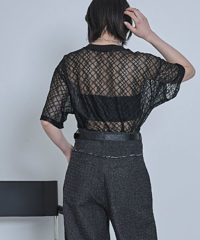 ・アーガイル柄のレース素材