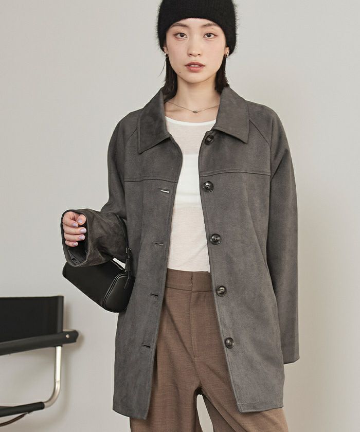 ・トレンドのフェイクスエード素材を使用したステンカラージャケット