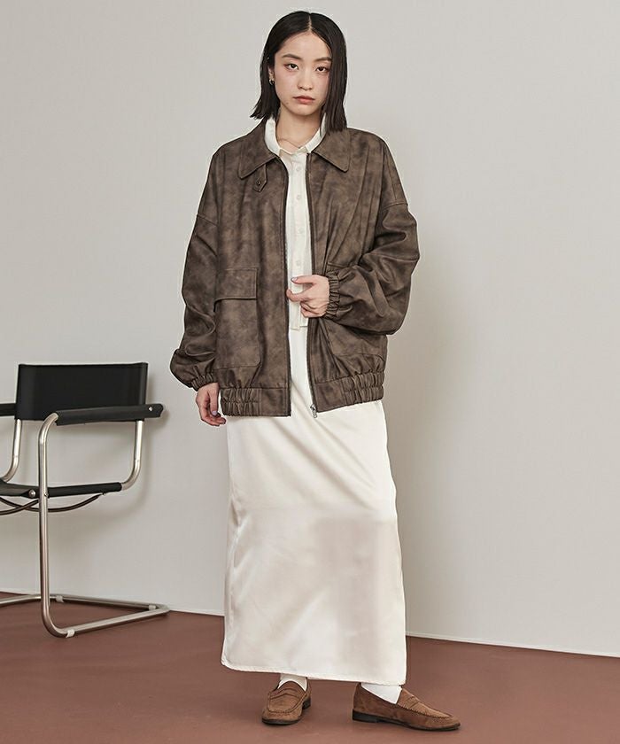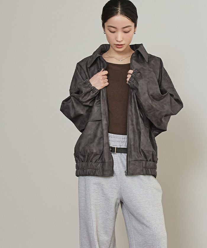 ムラ染めフェイクレザーブルゾン【miette ミエット】