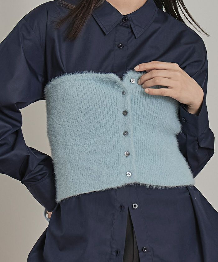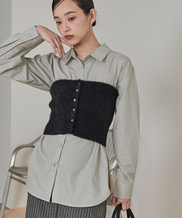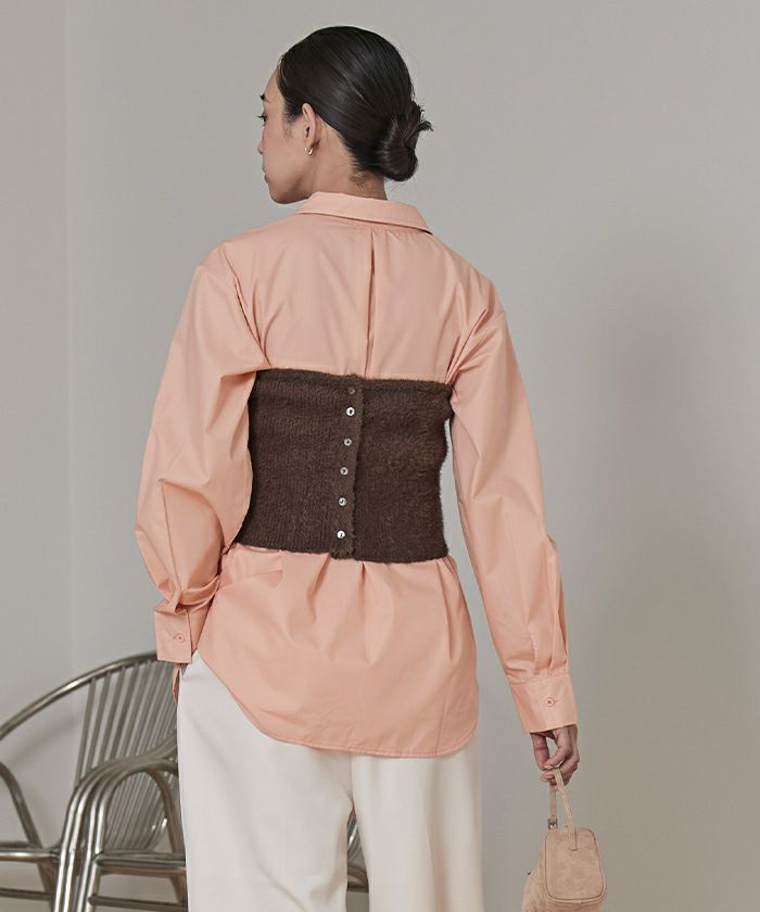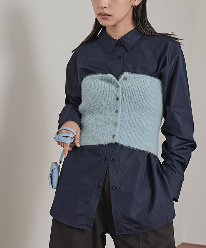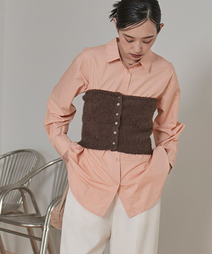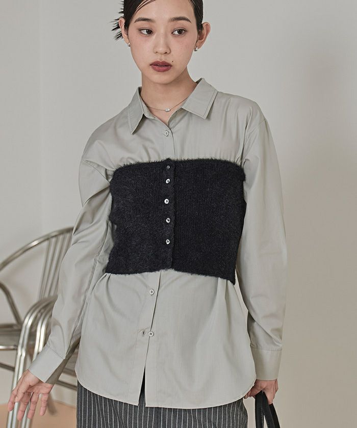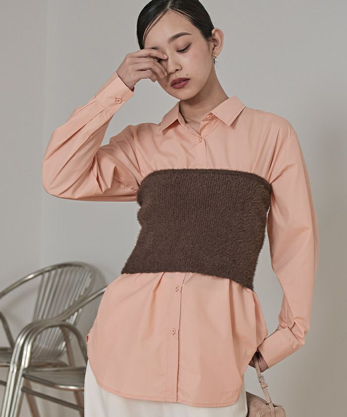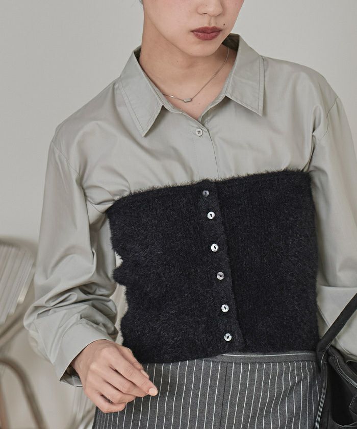 ・ふわふわと起毛感のあるニットベアトップとオーバーサイズシャツのセットアイテム