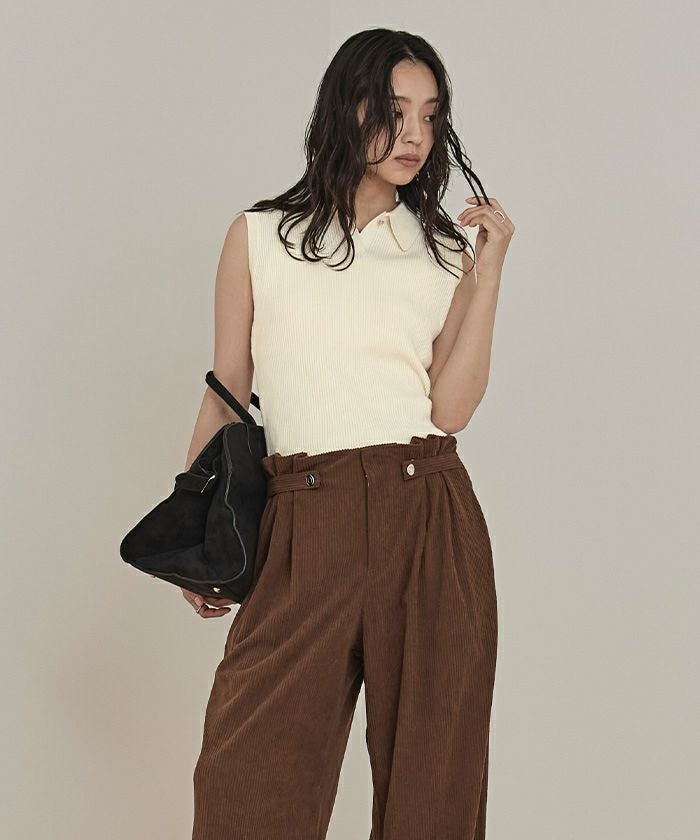 ・トレンド感のあるコンパクトなカーディガンとノースリーブのポロニットのセットアイテム