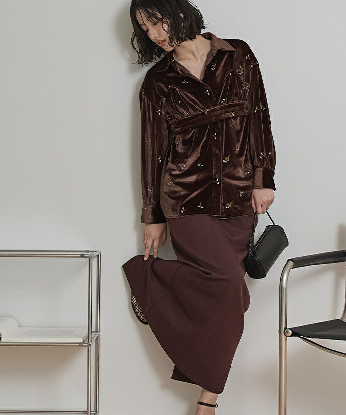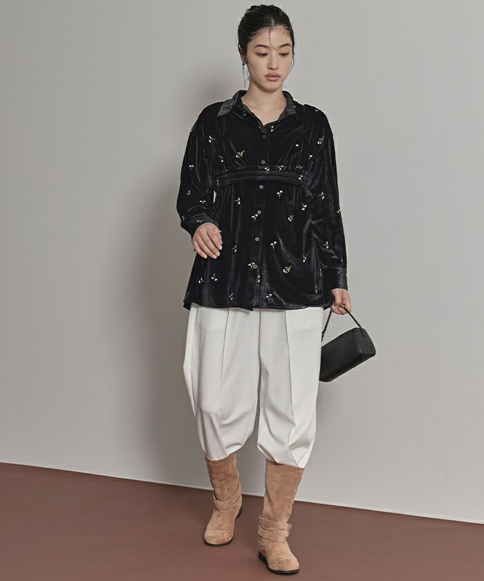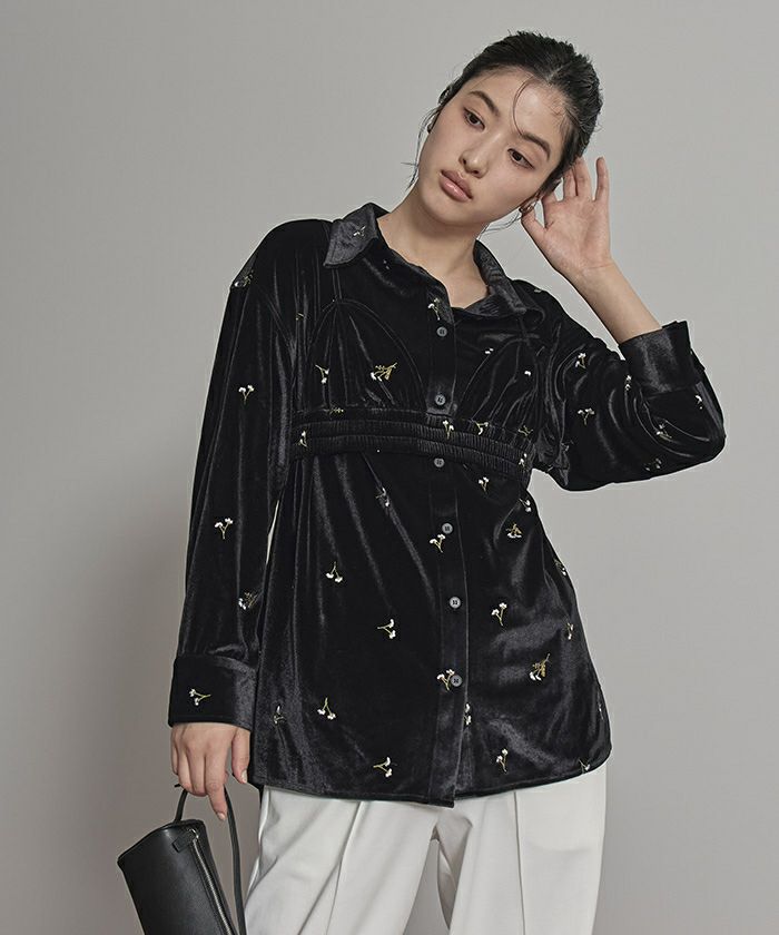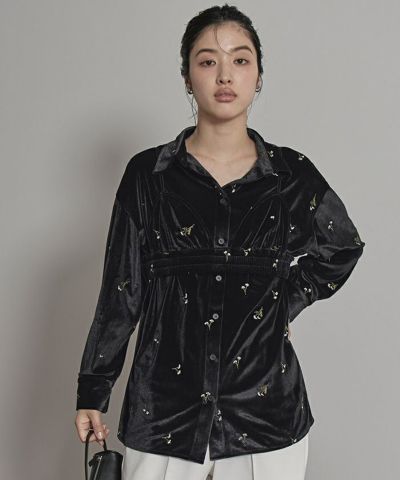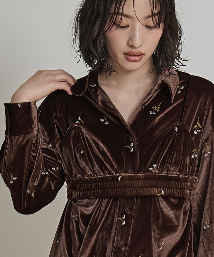 ・刺繍入りベロアシャツとベロアビスチェの2点セット