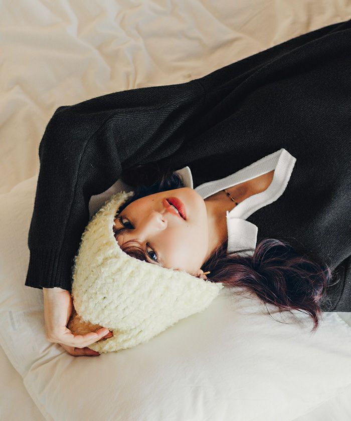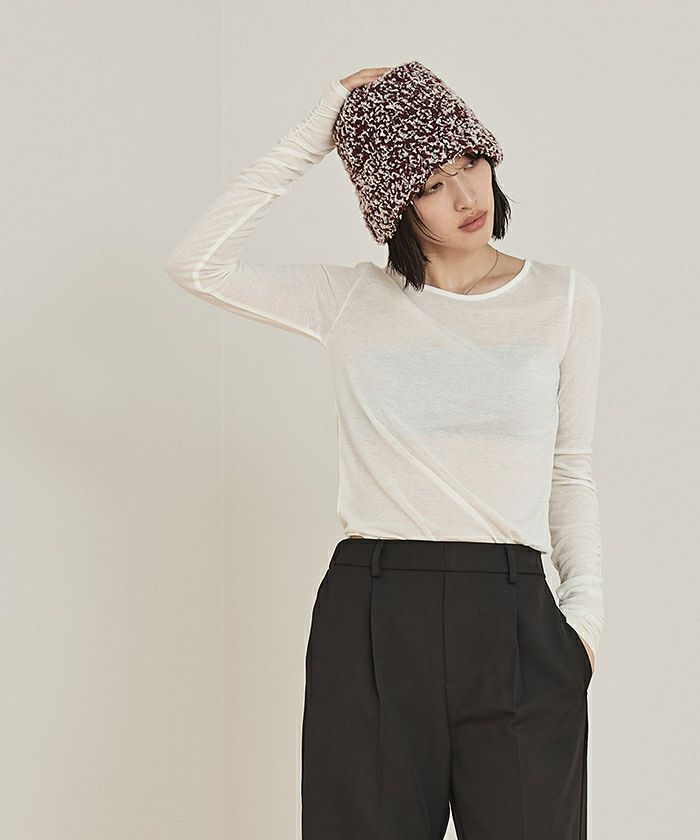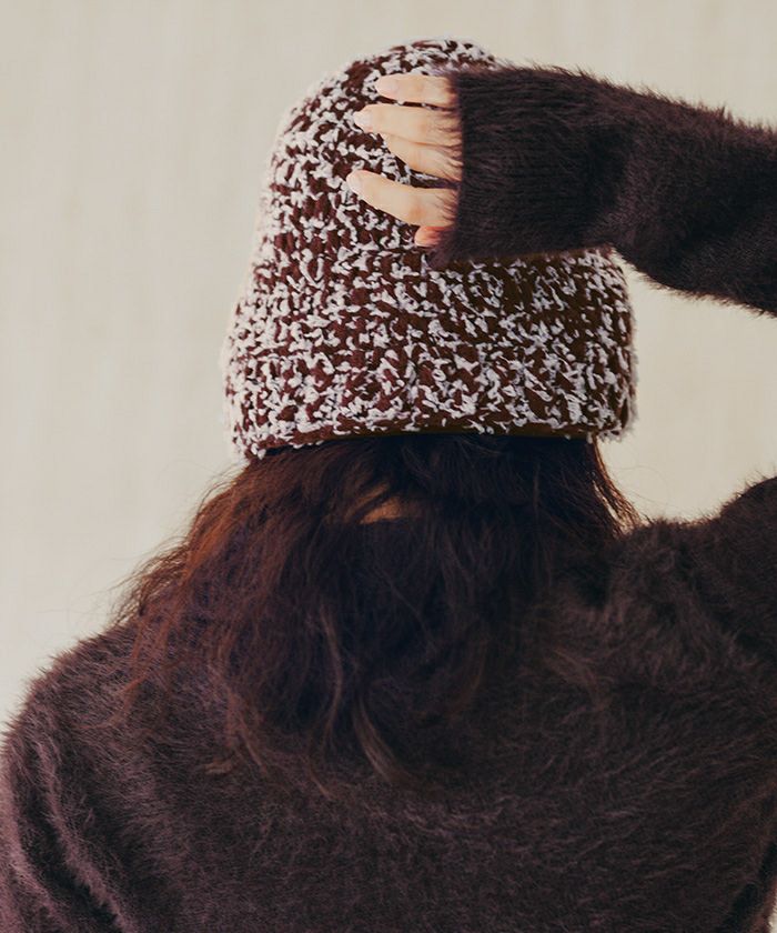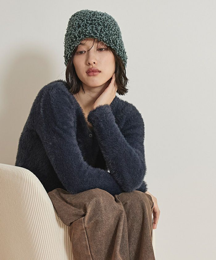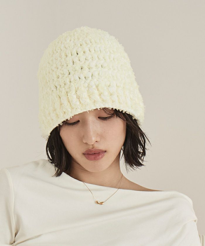 ・2種類のニット糸を引き揃えて編み立てモコモコのボリュームを出したニットバケットハット