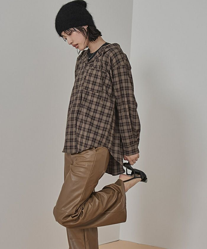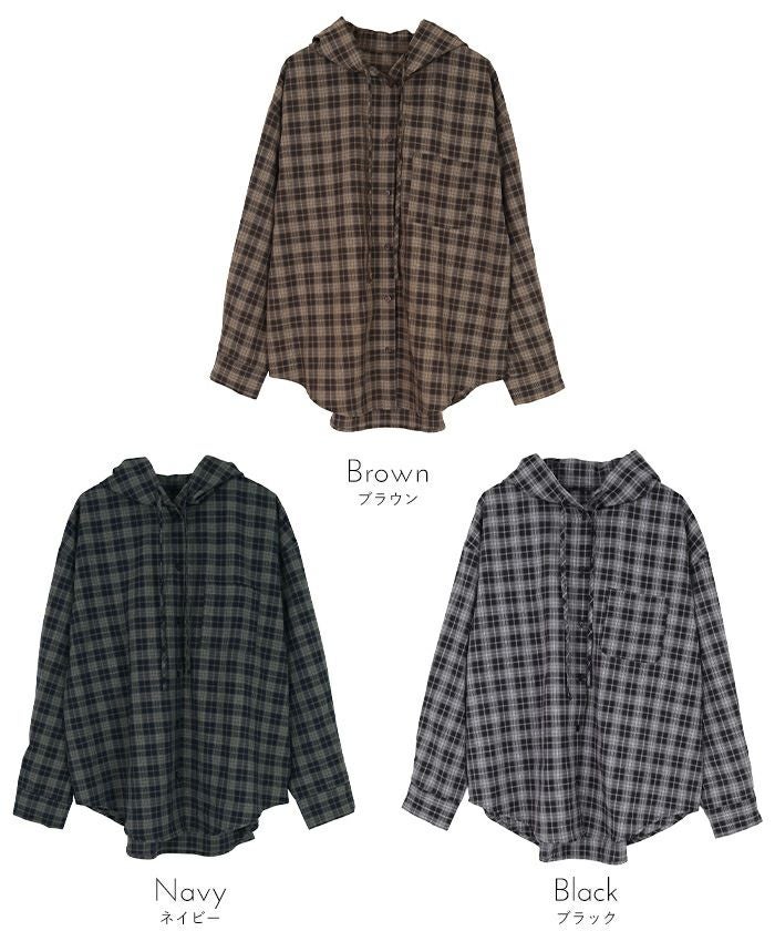 フード付きオーバーサイズチェックシャツ【miette ミエット】
