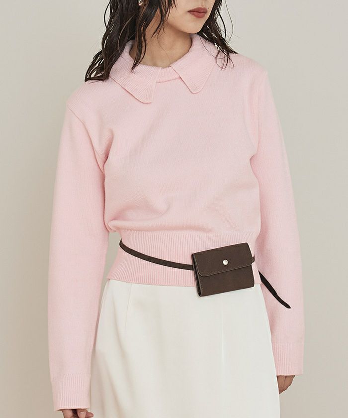 ・トレンドの襟付きデザインショートニット