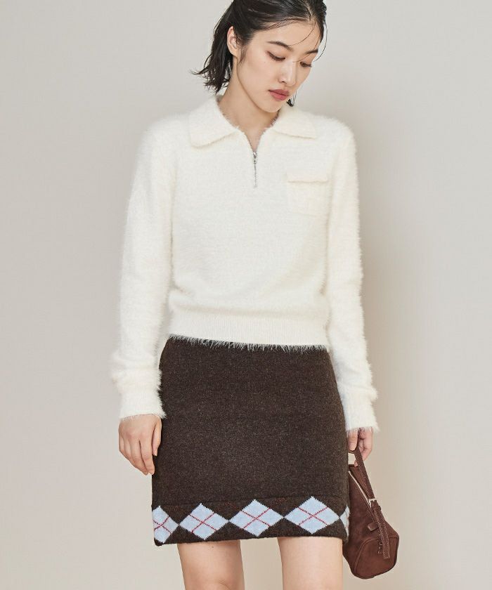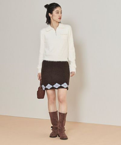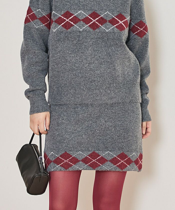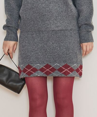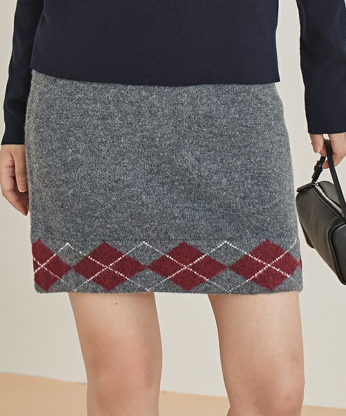 ・裾のアーガイル柄がポイントのニットミニスカート