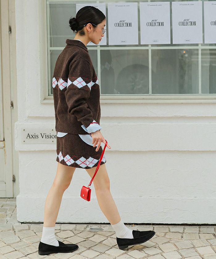 ・同素材アーガイルのニットとセットコーデも可能