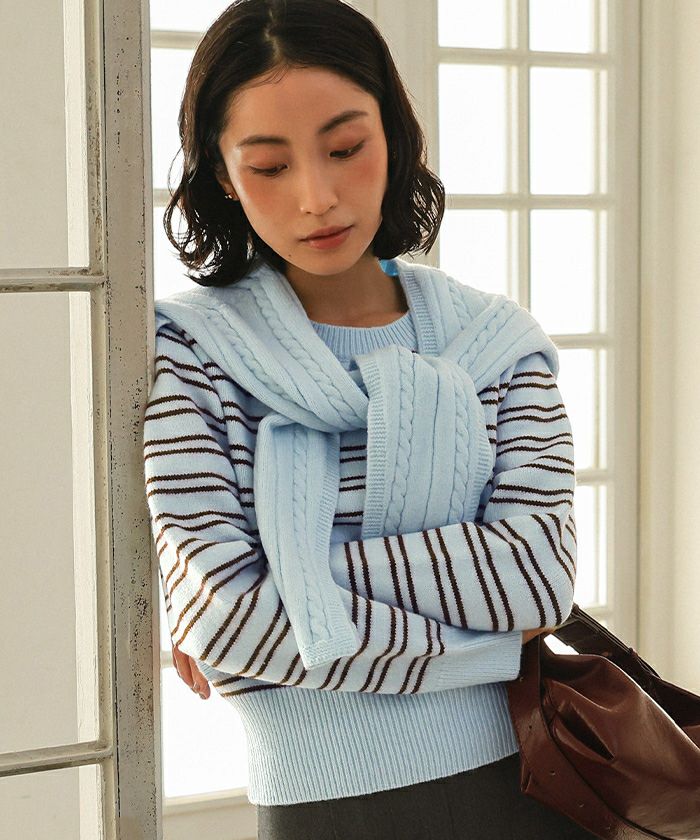 ショール付きマルチボーダーニット【miette ミエット】