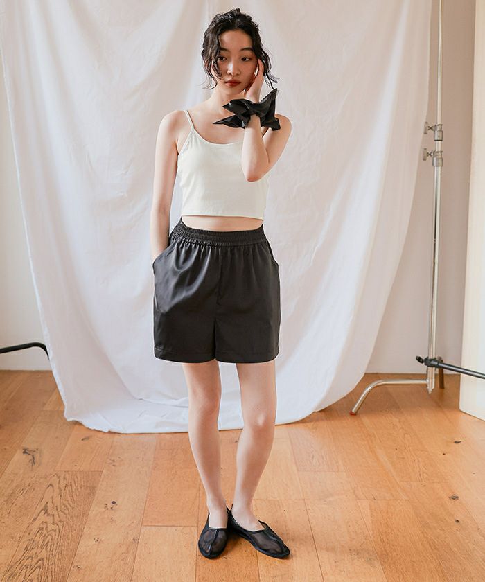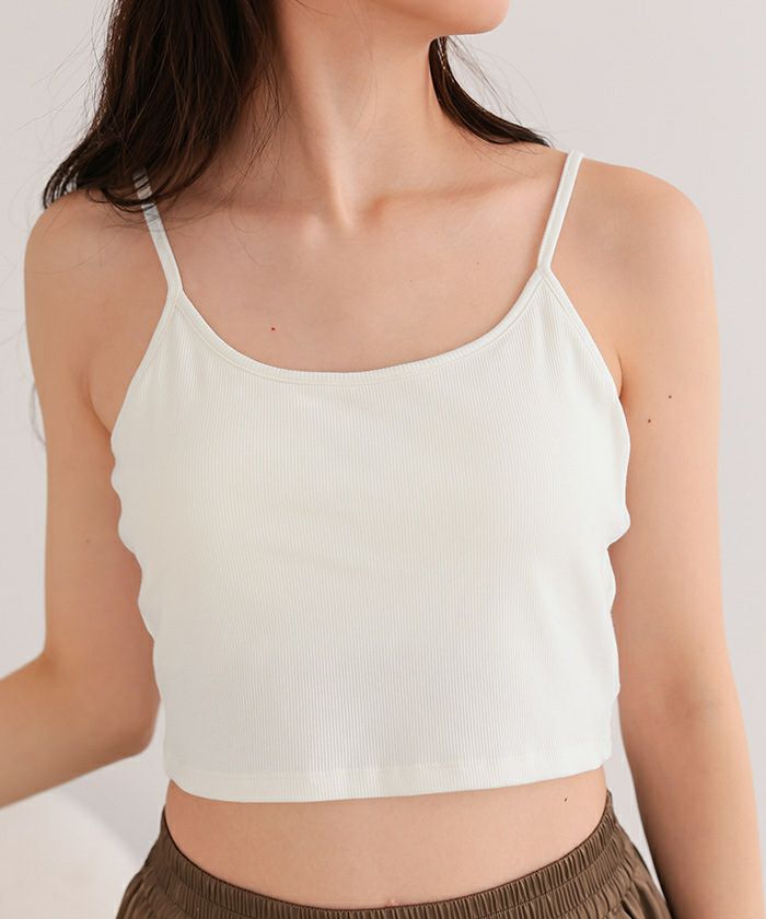 ・竹繊維生地を使用した、ひんやり心地よい接触冷感のあるカップ付きショート丈キャミソール