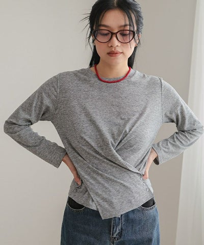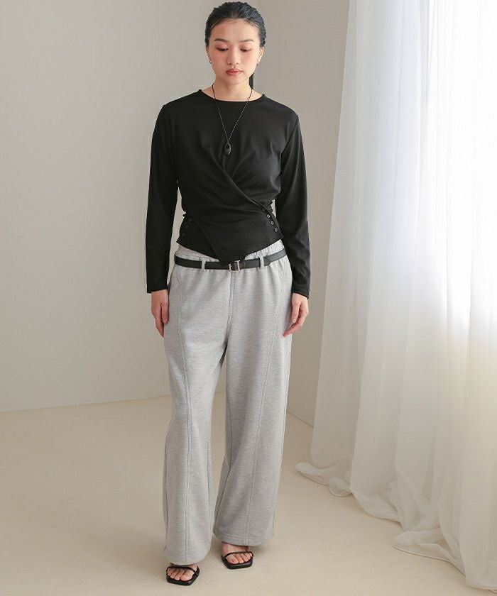 ・ウエストラインにカシュールデザインとサイドにあしらったボタンがポイントのトップス