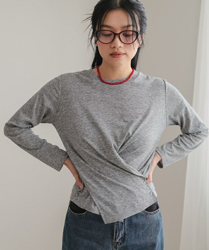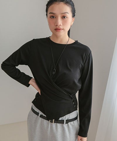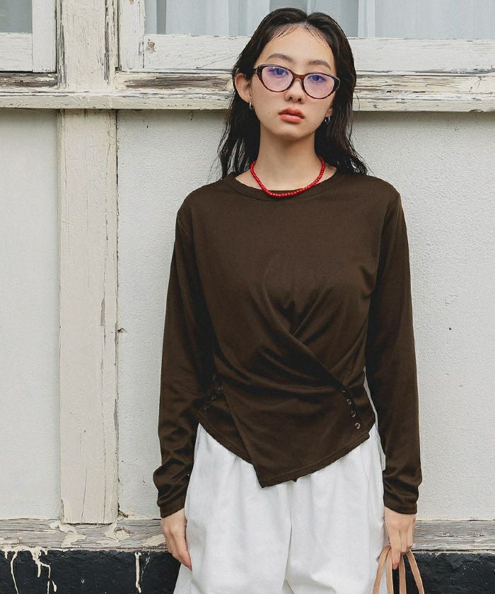 サイドボタンカシュクールトップス【miette ミエット】【メール便可/100】