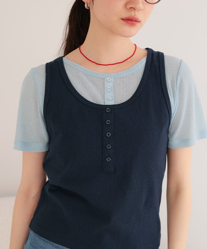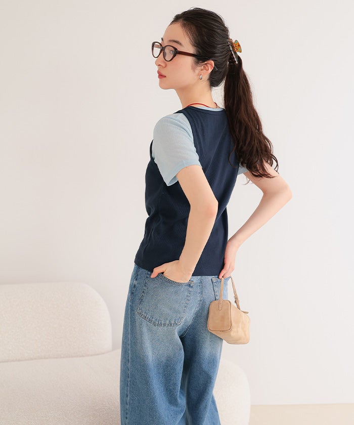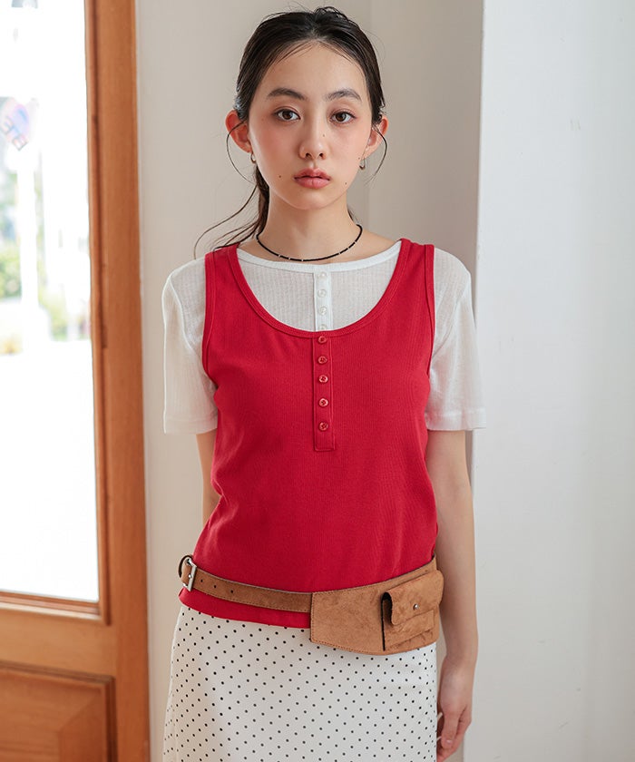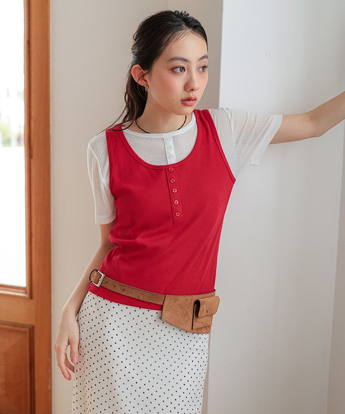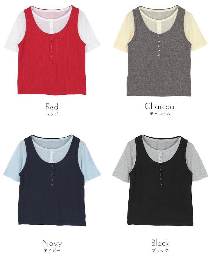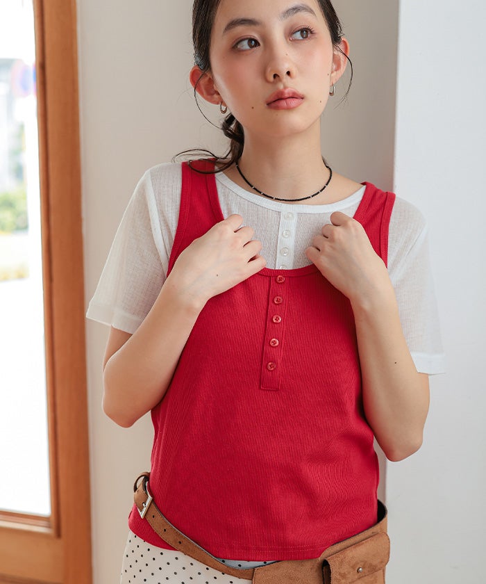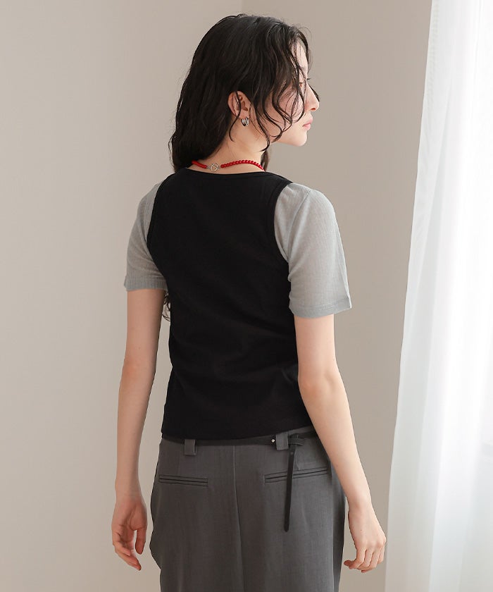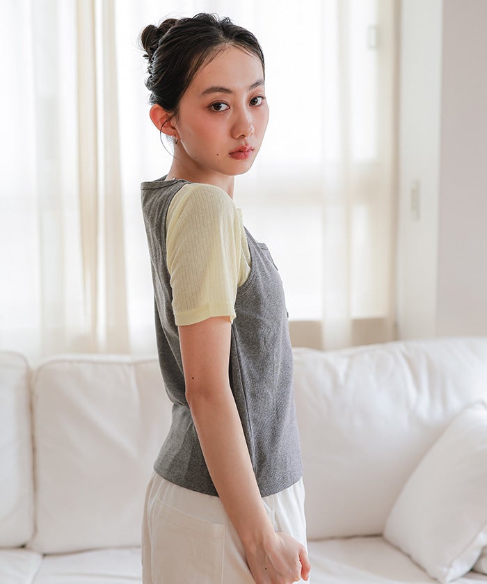 レイヤードライク半袖トップス【miette ミエット】【メール便可/100】