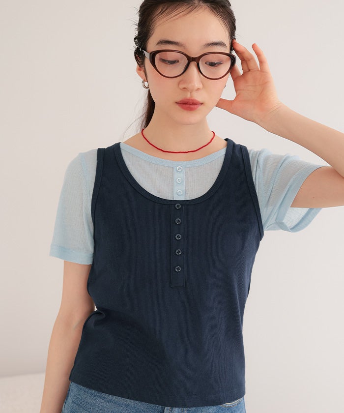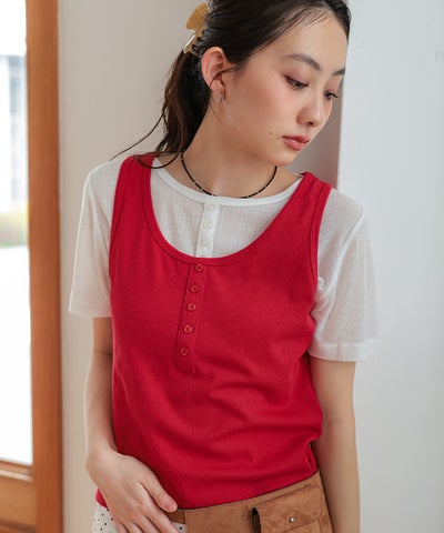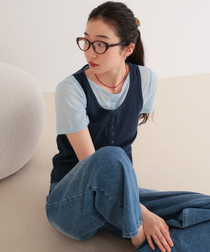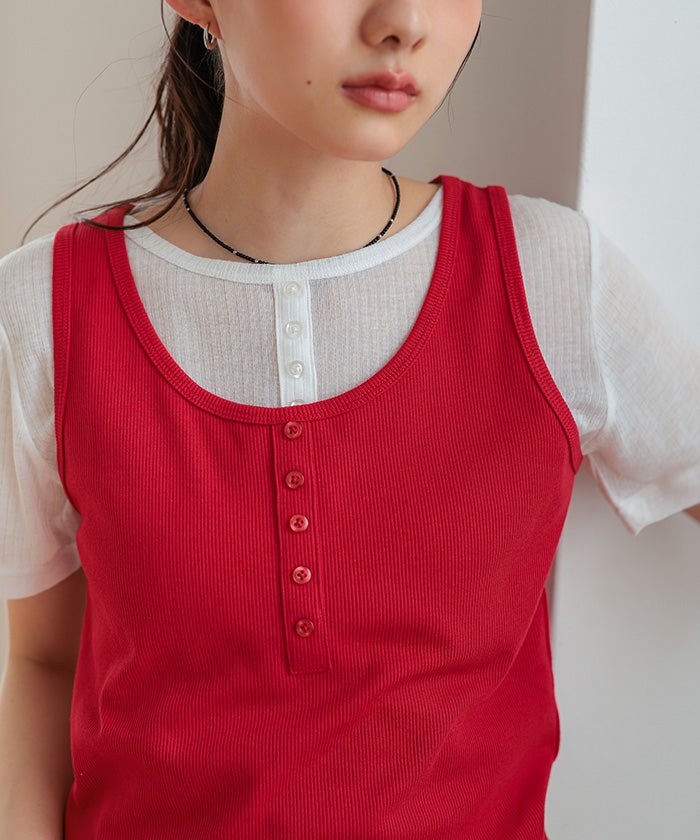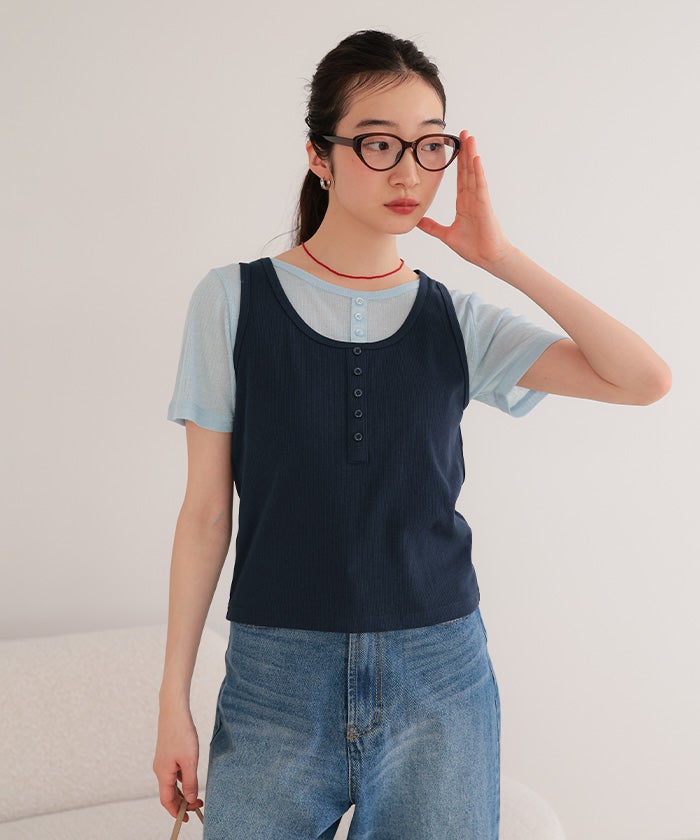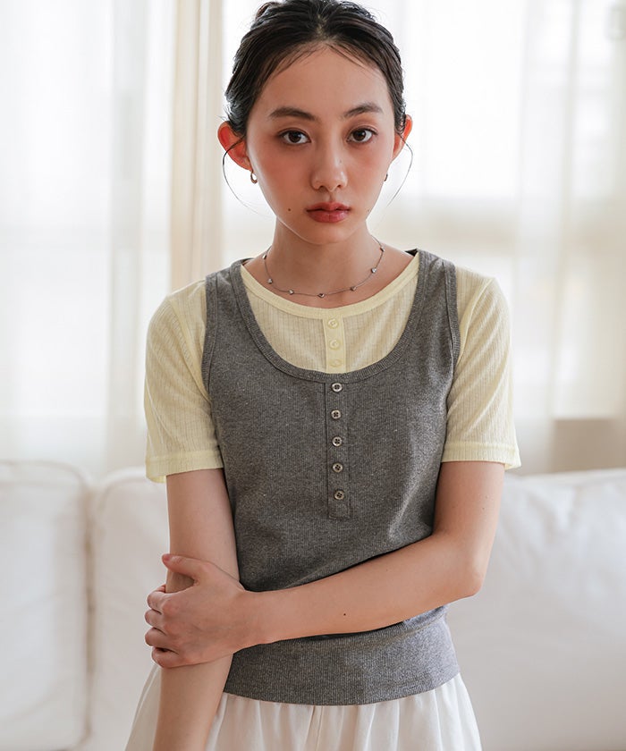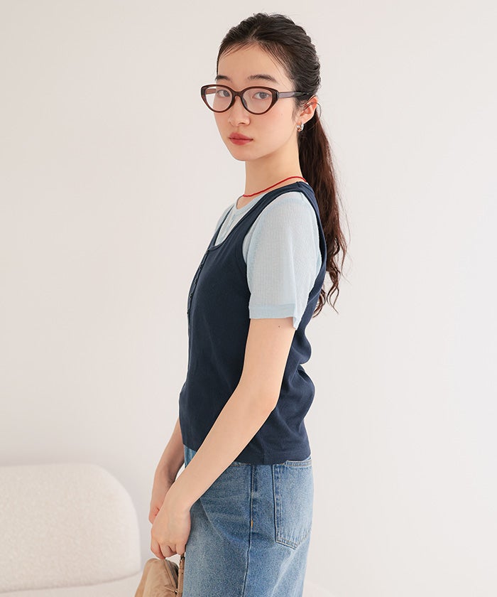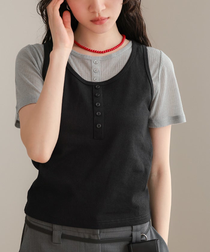 レイヤードライク半袖トップス【miette ミエット】【メール便可/100】