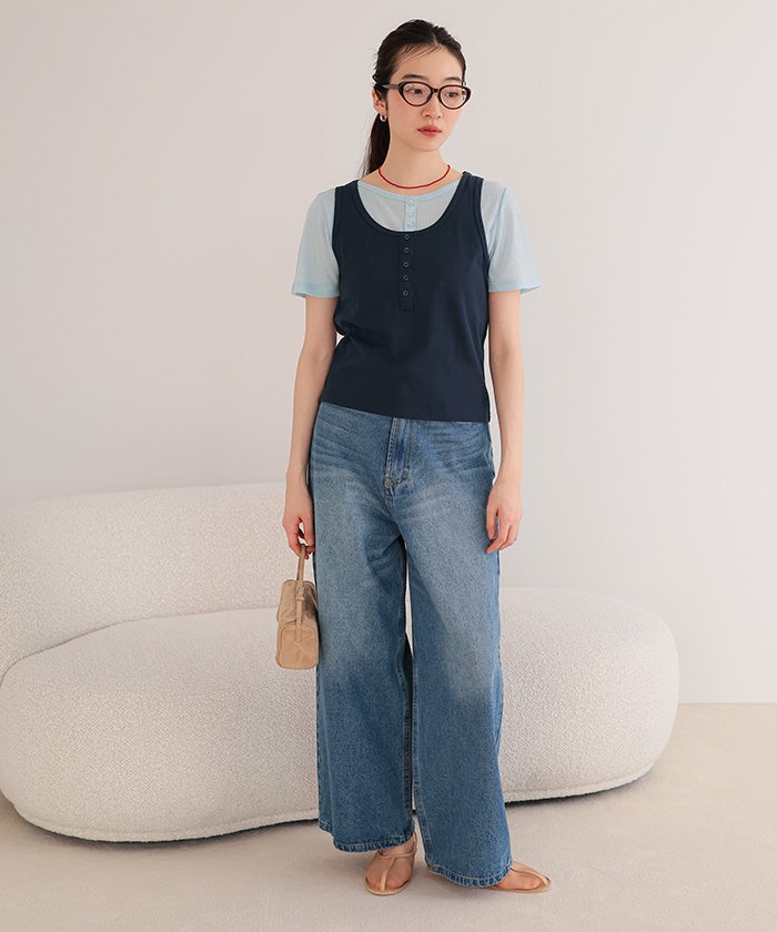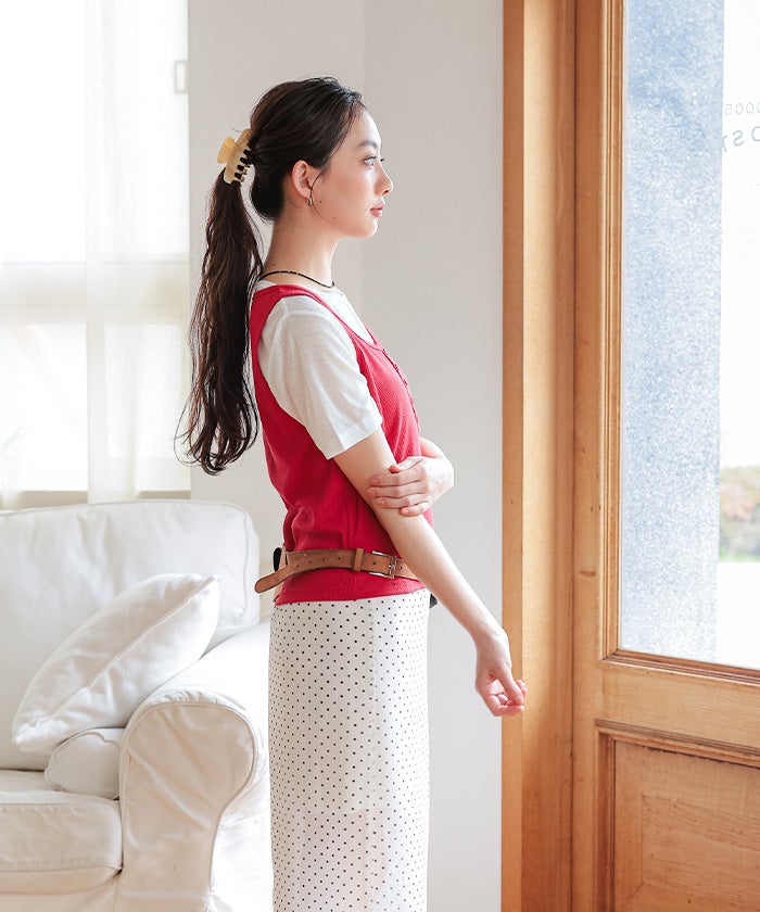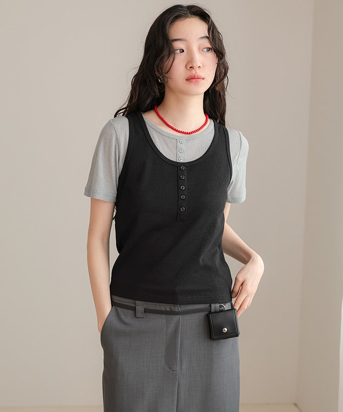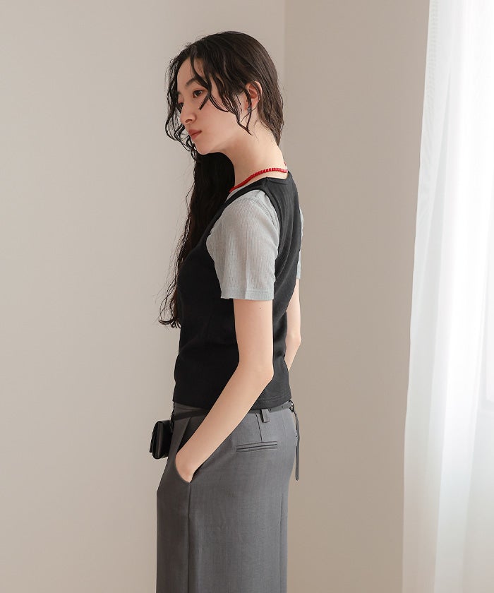 ・程よくフィットするリブ素材で、インでもアウトでも合わせていただけます