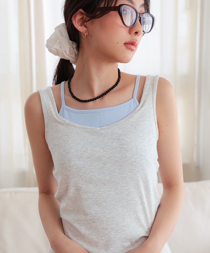 ・レイヤードスタイルを1枚で楽しめる、パッド付きタンクトップ