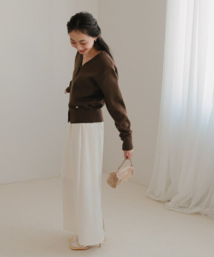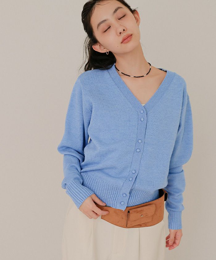くるみボタンVネックニットカーディガン【miette ミエット】