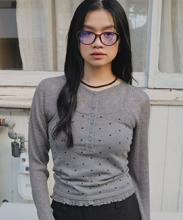・トレンド感のあるドット柄プリントに前立てデザインがポイントのキャミソール