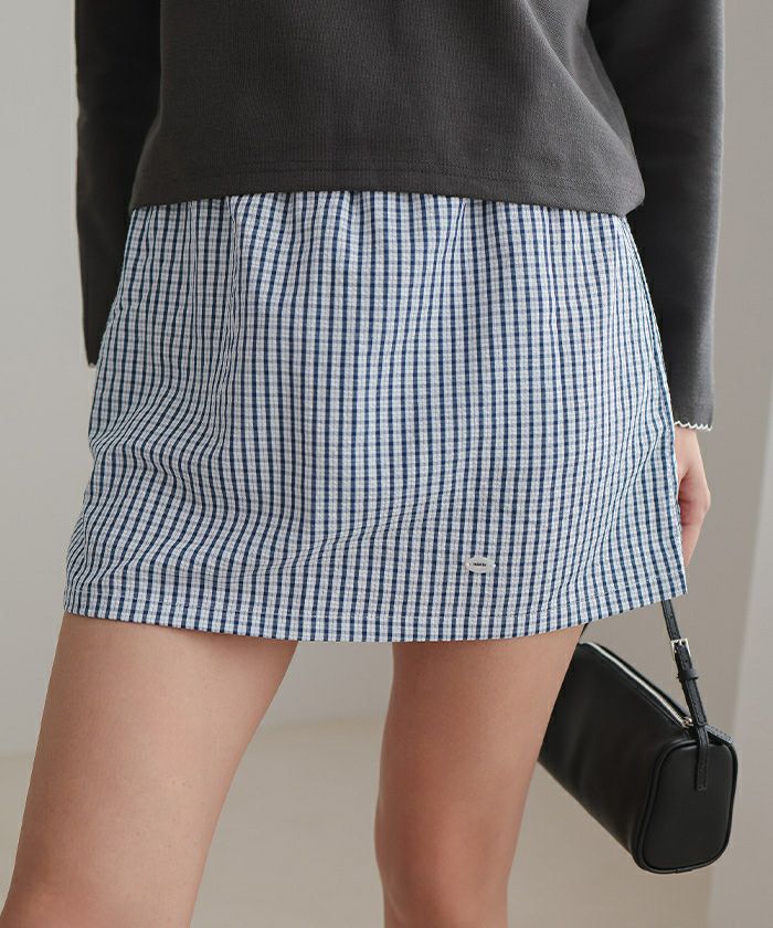・清涼感のあるチェック柄サッカー生地を使用した、サッカーチェックシャツスカートセット