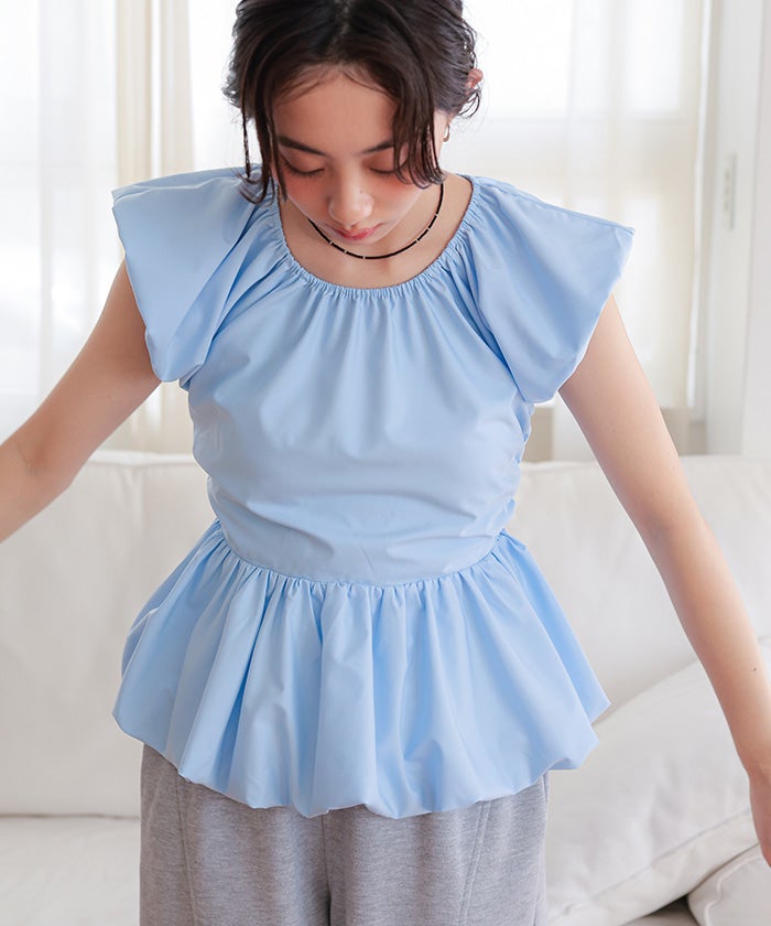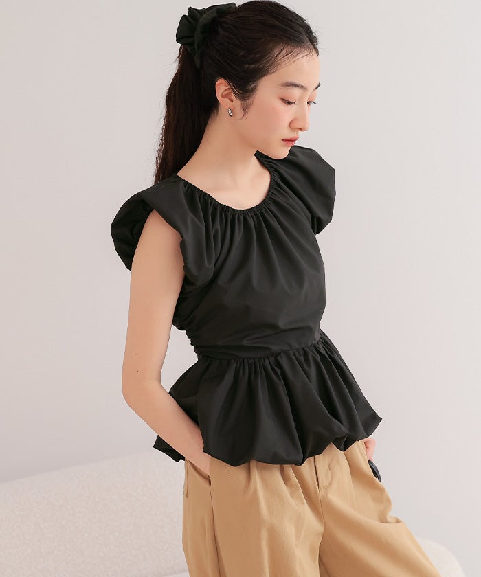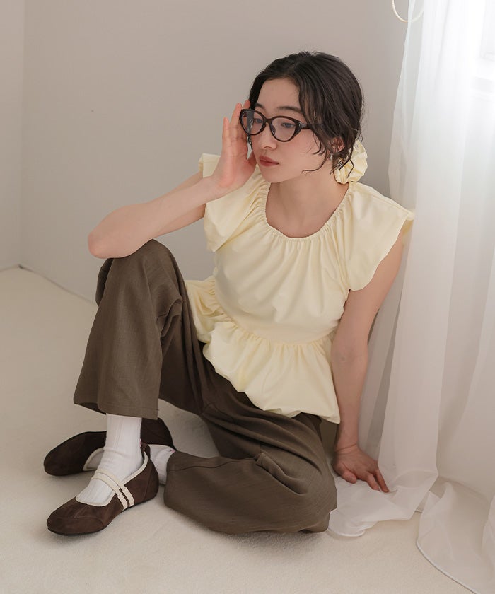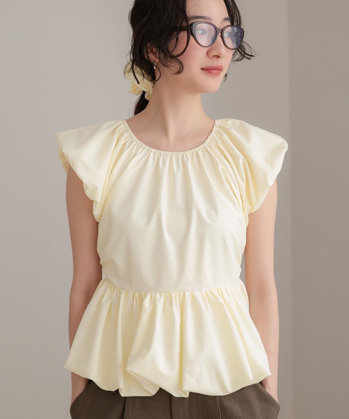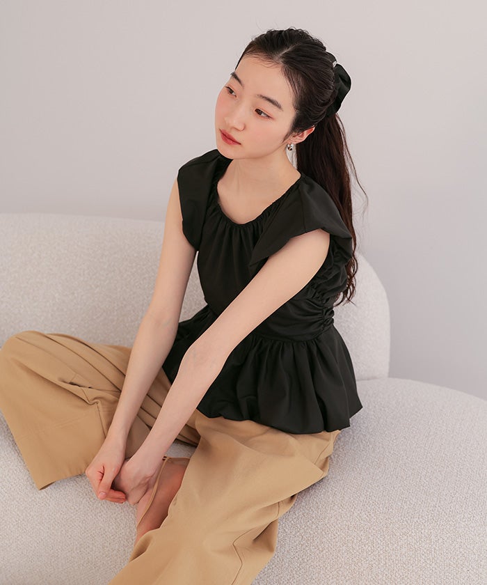 ・ノースリーブほど露出感はなく袖口にギャザーが入っているので、二の腕の付け根を自然にカバーしてくれるのもポイント
