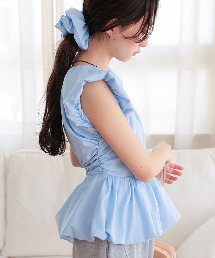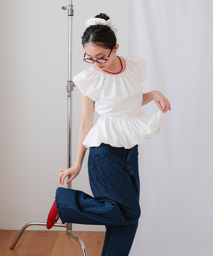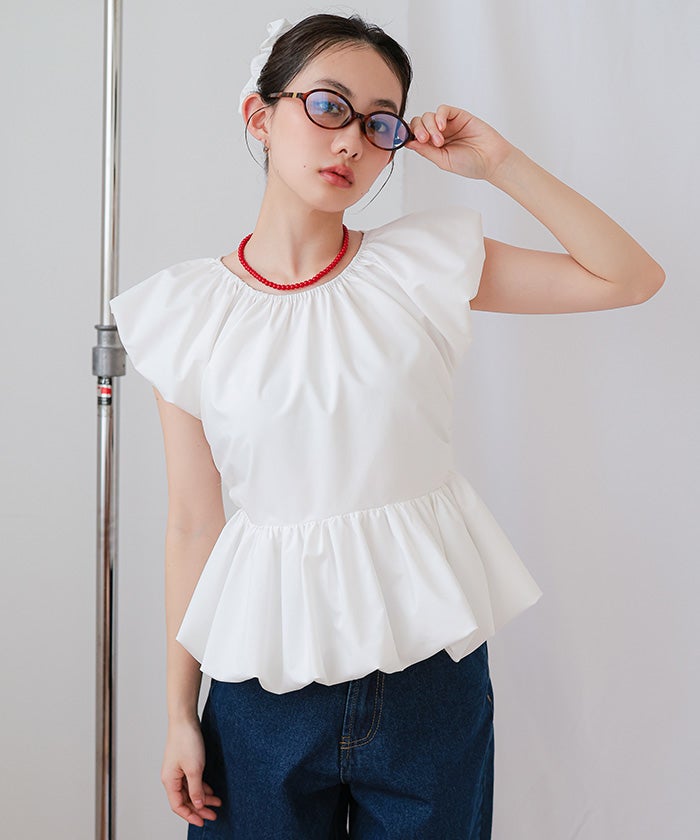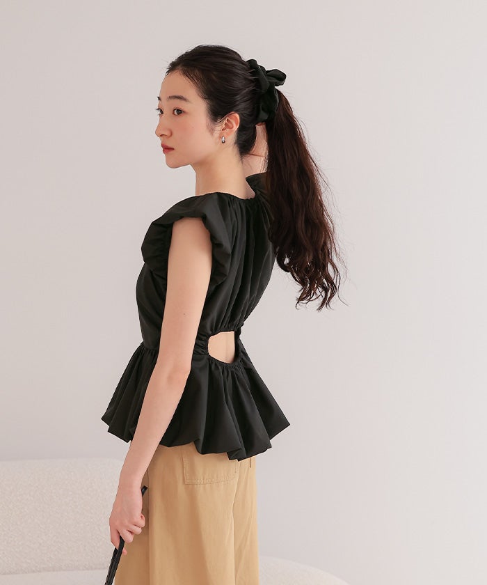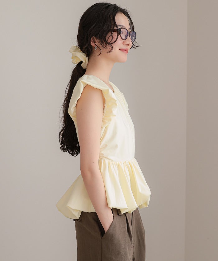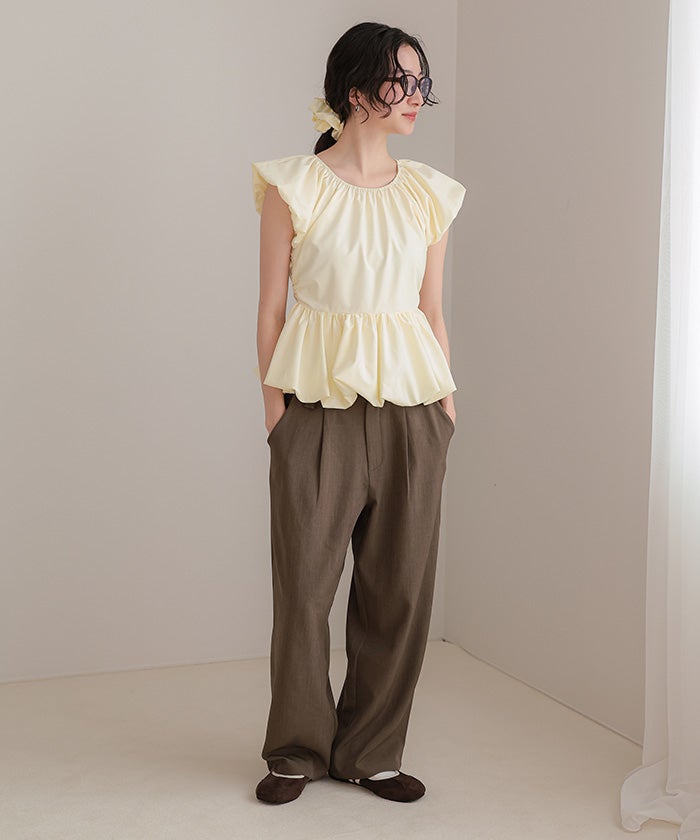 ・ノースリーブほど露出感はなく袖口にギャザーが入っているので、二の腕の付け根を自然にカバーしてくれるのもポイント