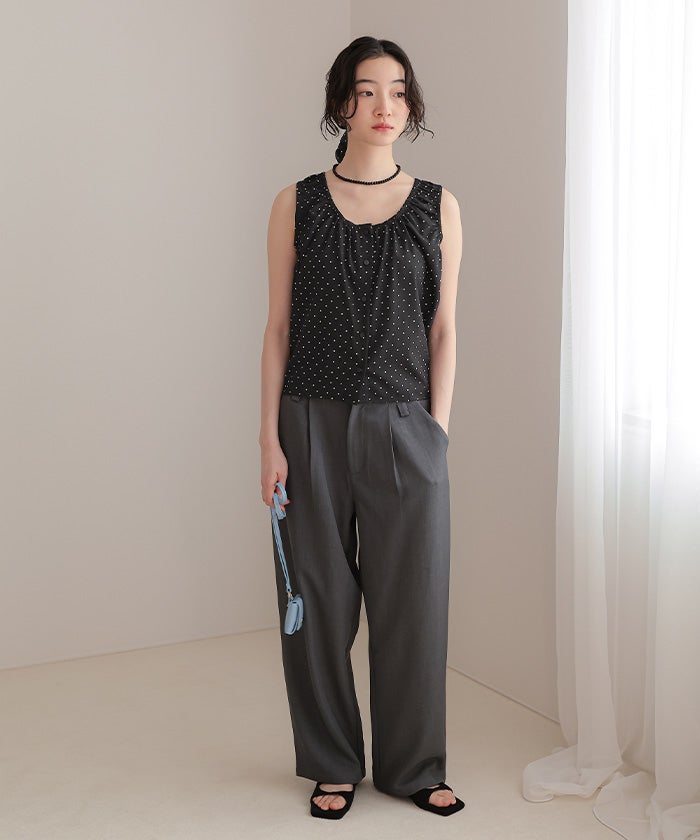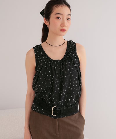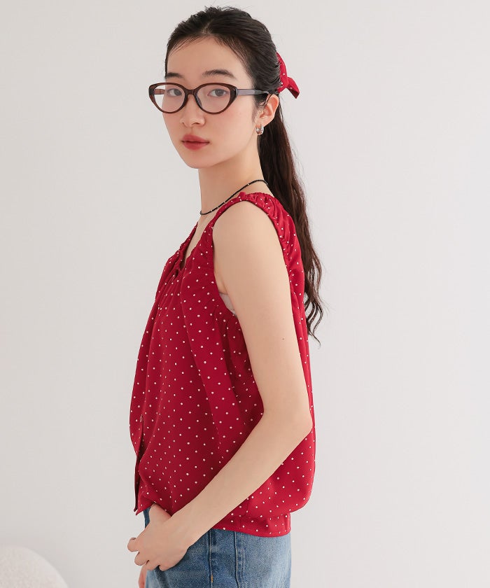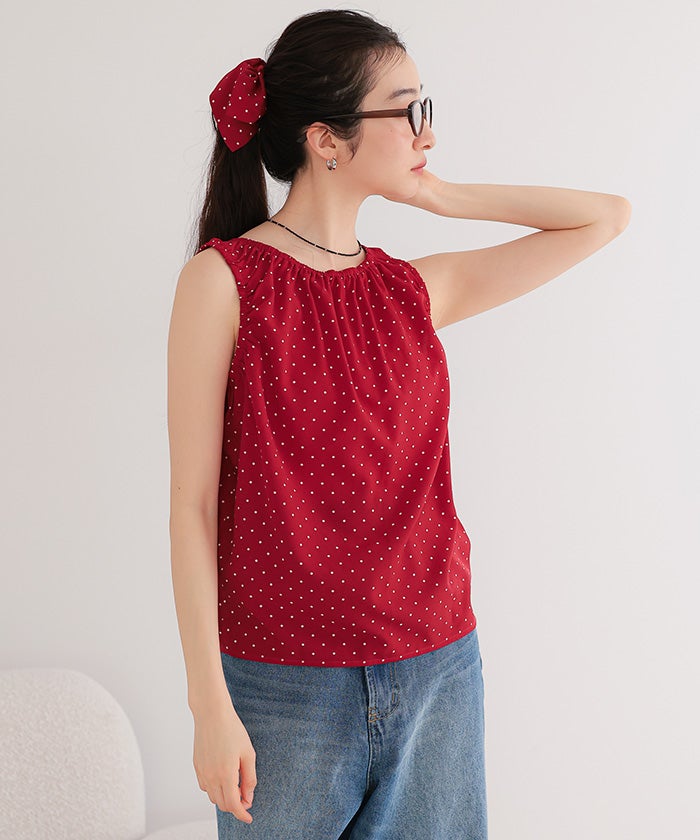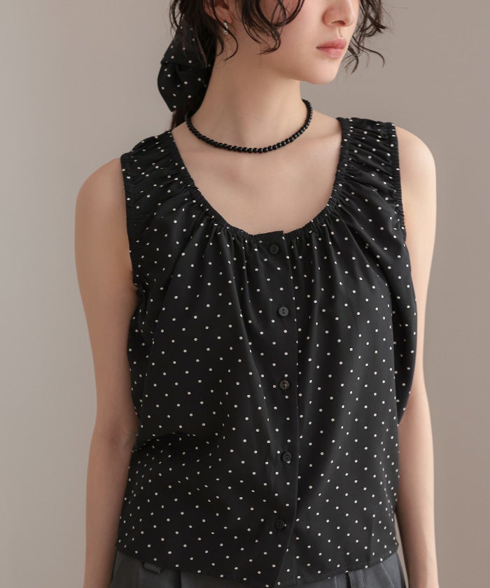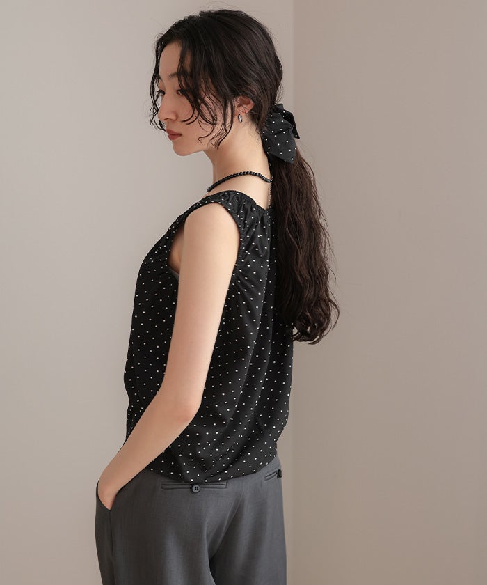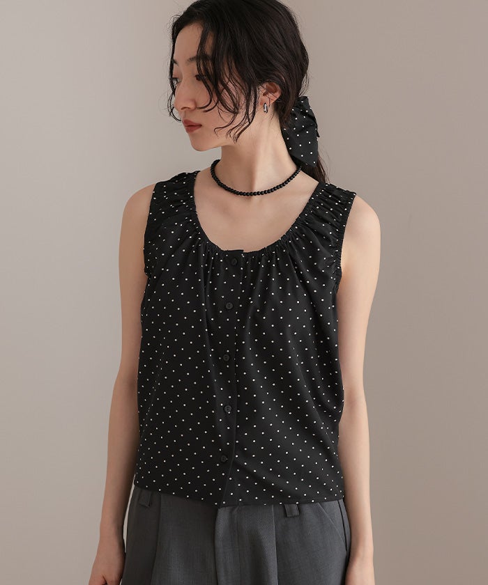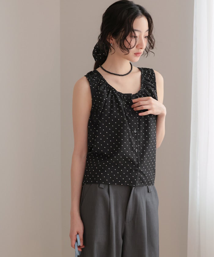 ギャザーデザインノースリーブブラウス【miette ミエット】【メール便可/100】