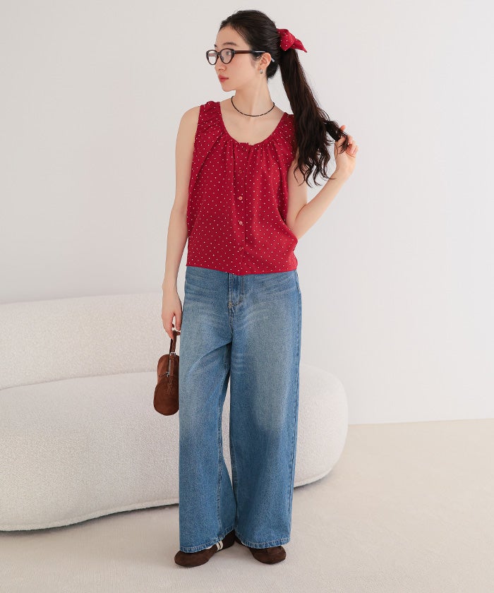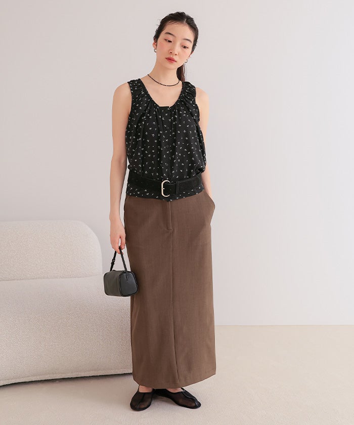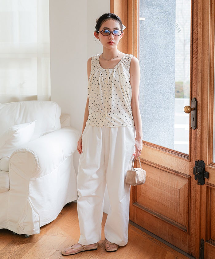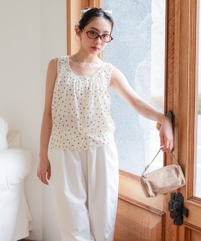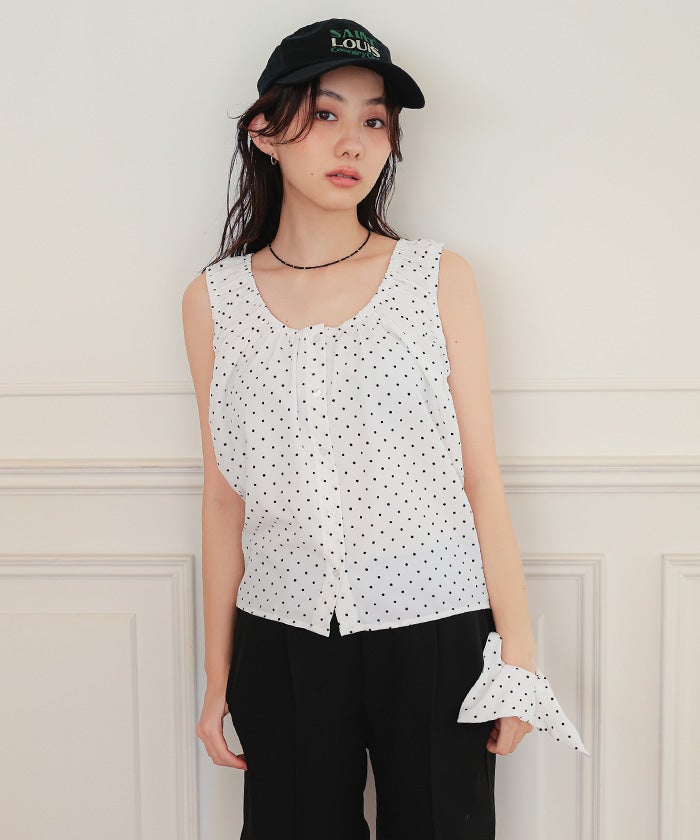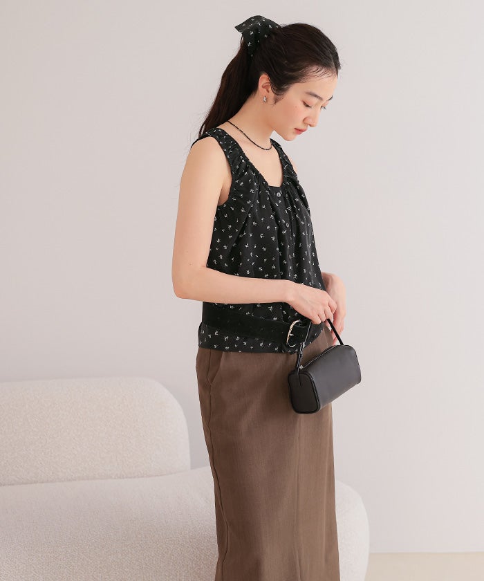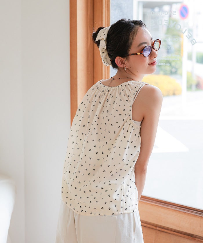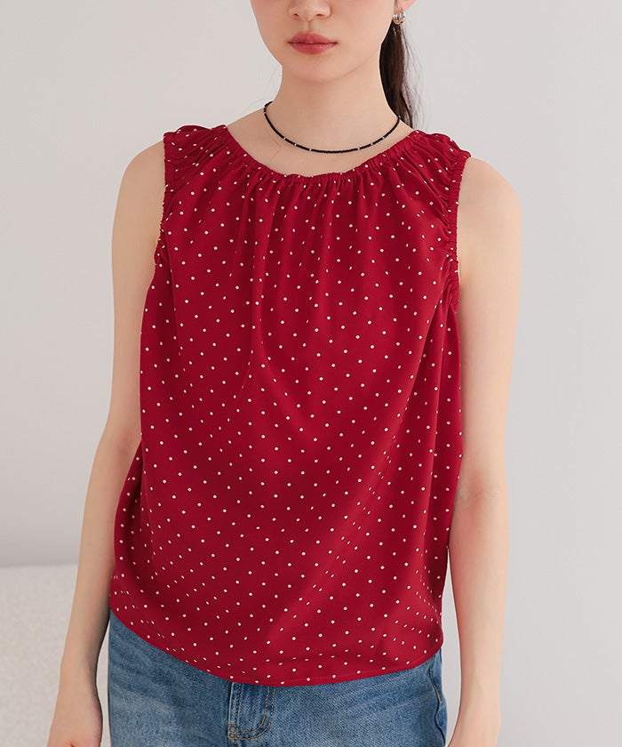 ギャザーデザインノースリーブブラウス【miette ミエット】【メール便可/100】