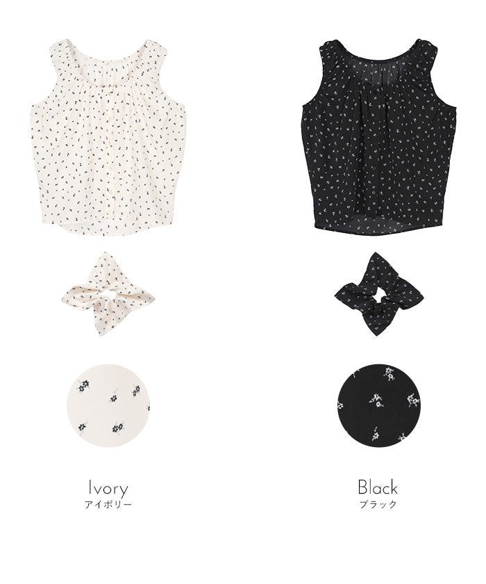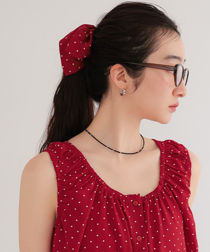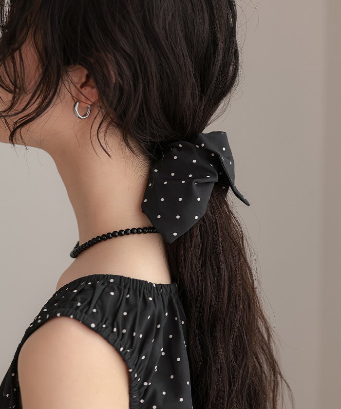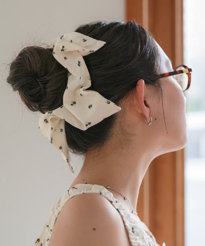 ・同生地のスクエアシュシュ付きで、セットでもそれぞれ単品使いでも◎