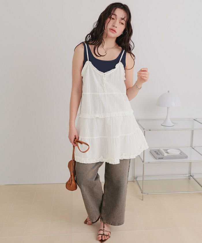 他の画像を見る 【新作★期間限定20%OFF★19日11時カラ】【titivate】 フリルデザインチュニックキャミソールトップス 通常価格 ¥ 5,489 価格 ¥ 4,391 税込 販売開始前です。 販売期間 2026/03/19 11:00 〜 2026/03/26 10:59 お気に入りに登録する
