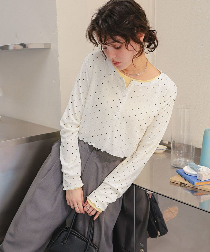 他の画像を見る □【miette】【期間限定★SALE】 ドット裾フリルヘンリーネックトップス【miette ミエット】【メール便可/100】 通常価格 ¥ 4,939 価格 ¥ 4,197 税込 お気に入りに登録する