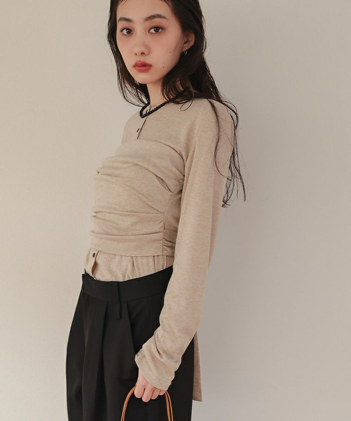 他の画像を見る □【miette】【期間限定★SALE】 ダブルボタンギャザーデザインブラウス【miette ミエット】【メール便可/100】 通常価格 ¥ 6,919 価格 ¥ 5,535 税込 お気に入りに登録する