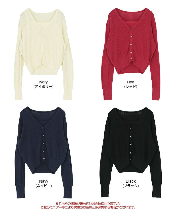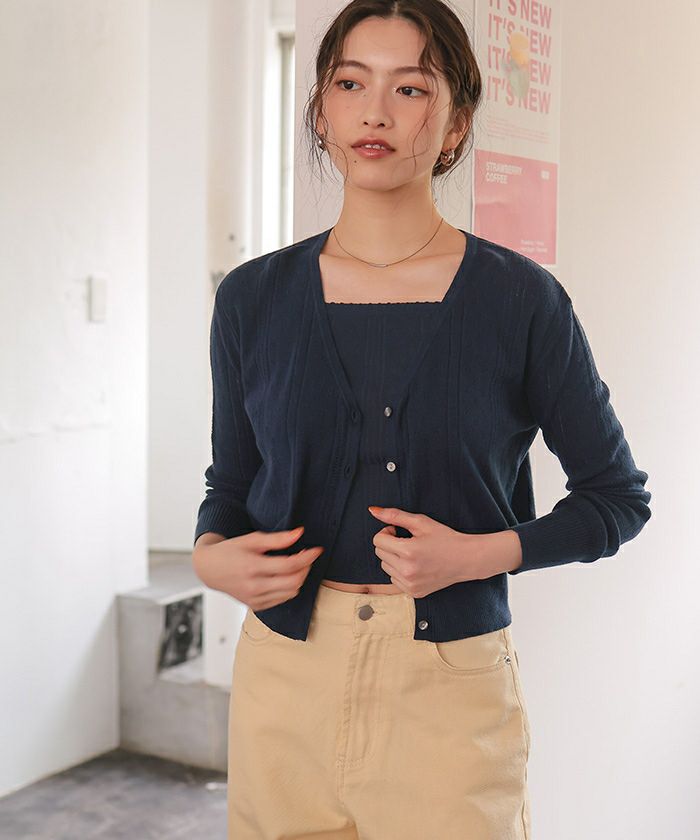 他の画像を見る 【titivate】【期間限定★SALE】 アイレットニットカーディガン/キャミソールトップスセット【メール便可/100】 通常価格 ¥ 6,589 価格 ¥ 3,294 税込 お気に入りに登録する