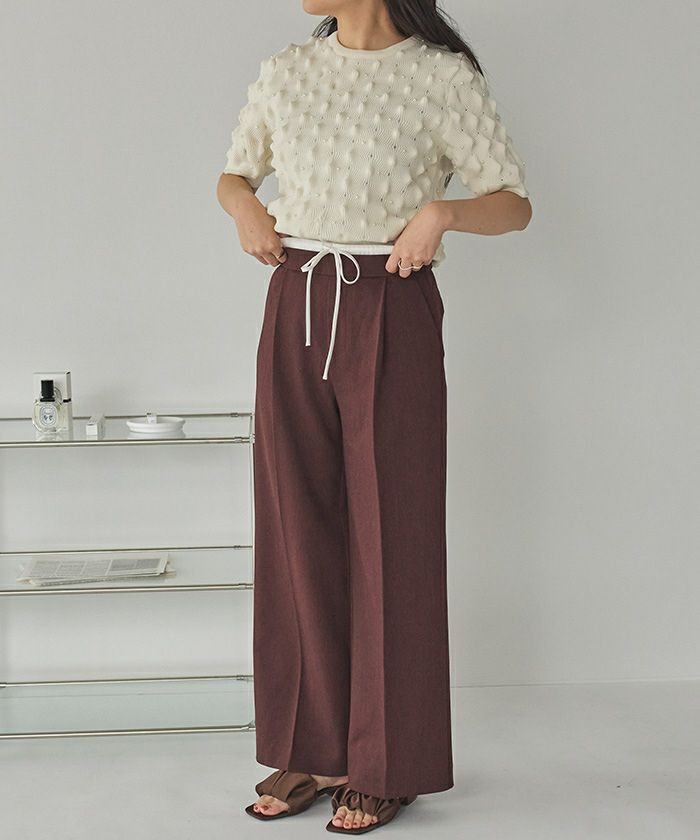 ・ドット見えする打ち込みボールとぽこぽこと表面変化のある編地がかわいいニットトップス