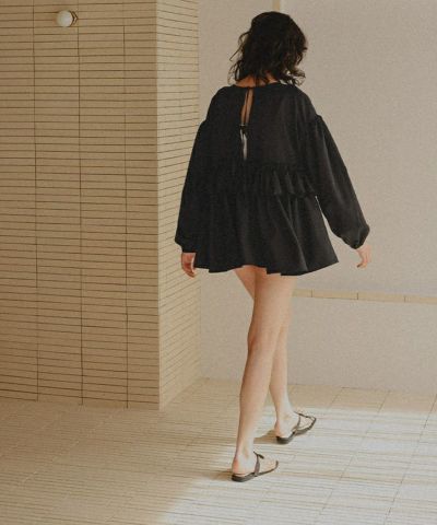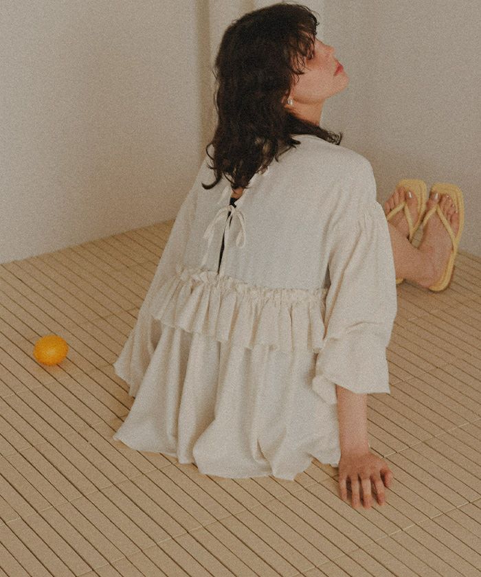 デザインに一目惚れして購入しました! 実際着てみると、後ろに向かって長くなっている裾のシルエットが可愛いです! プールや海に行くとき、トップスとしても着て行けるので重宝しそうです。