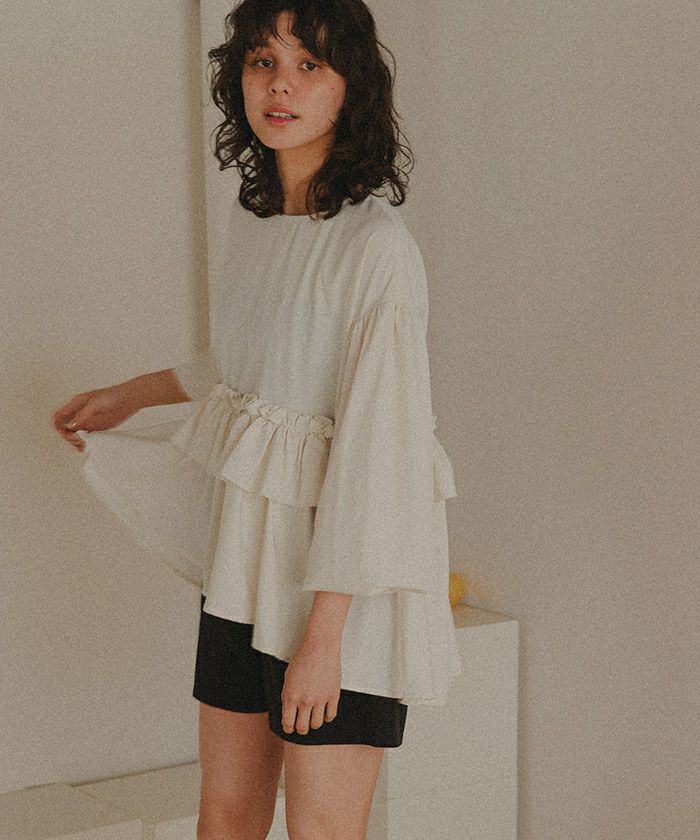 ・大人可愛いシルエットを叶え、おしゃれにカバーアップの出来るヘムラインフレアラッシュガードトップス。