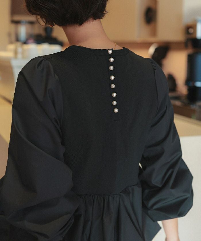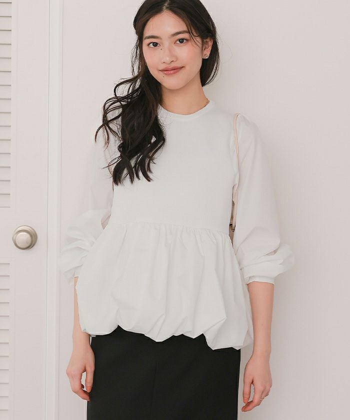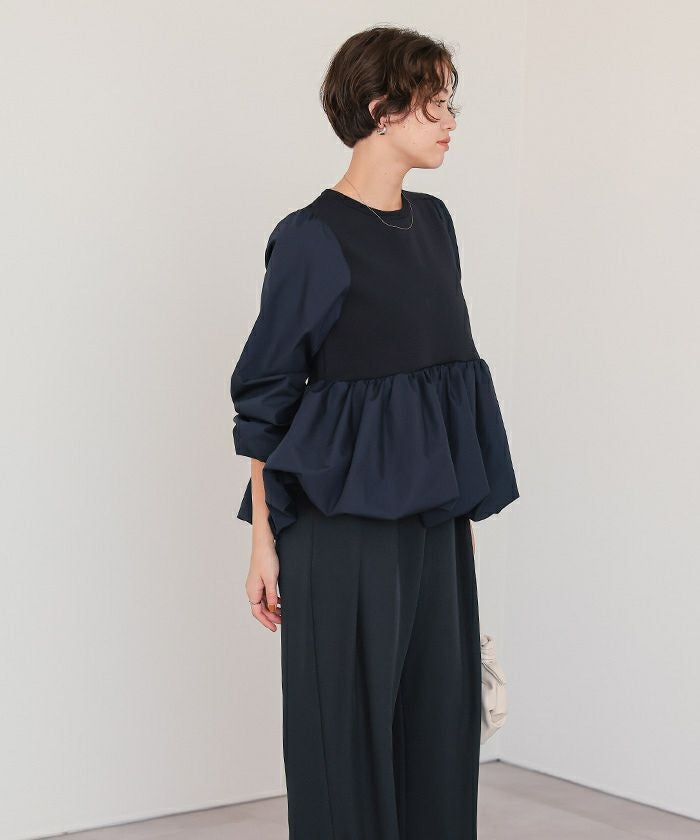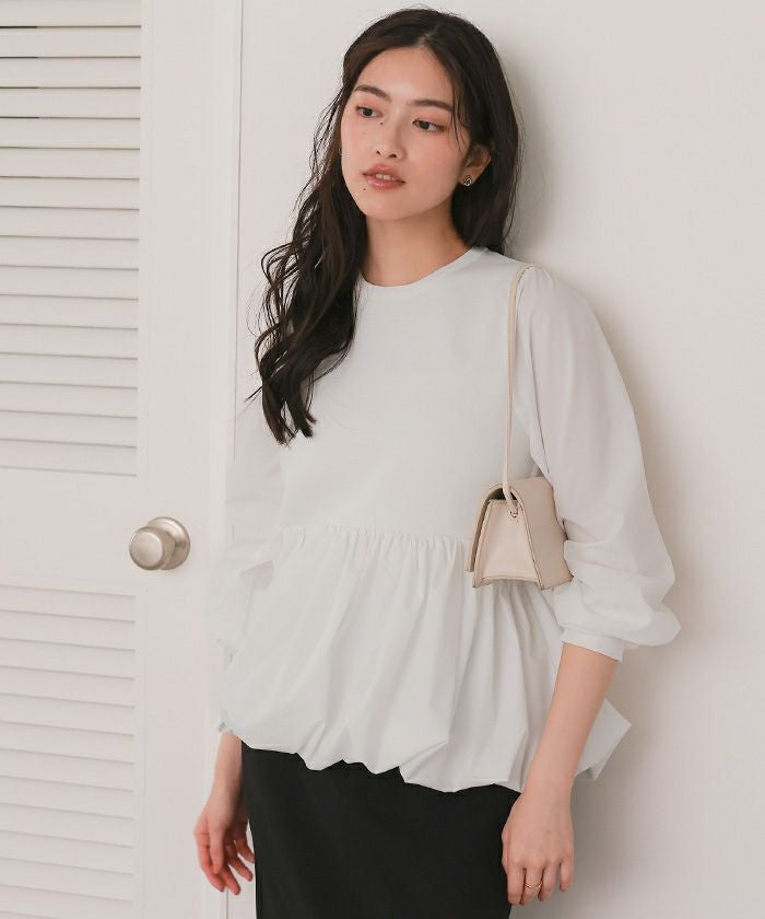 ・異素材ドッキングで表情豊かに仕上げた、大人フェミニンなペプラムトップス