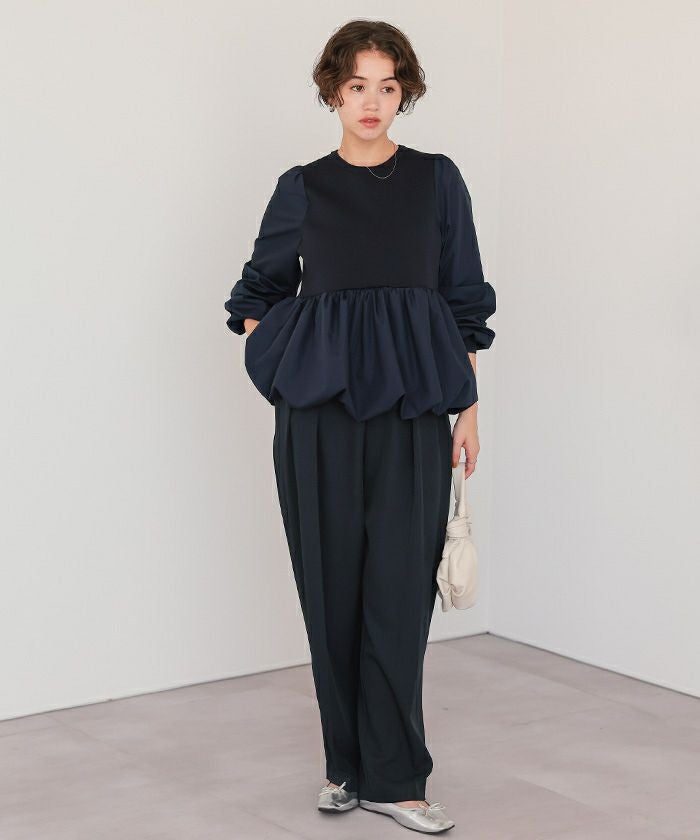 ・コンパクトな身頃とふわっと広がるペプラムのメリハリで、スタイルアップ効果抜群