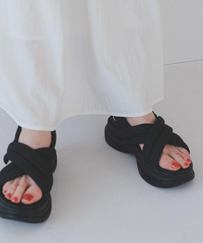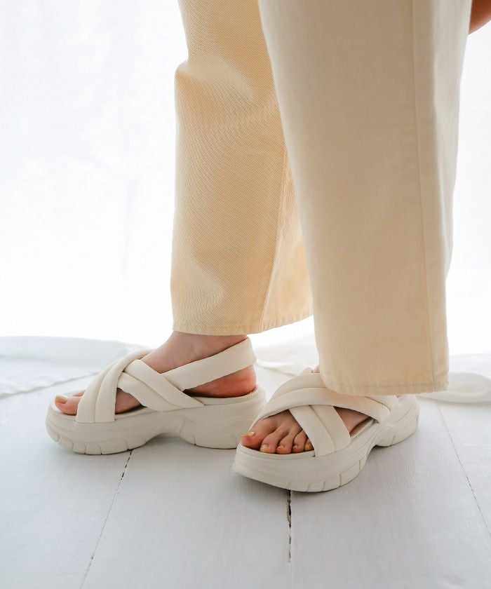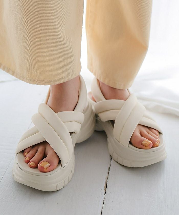 ・トレンドムード漂う厚底パデットサンダル。
