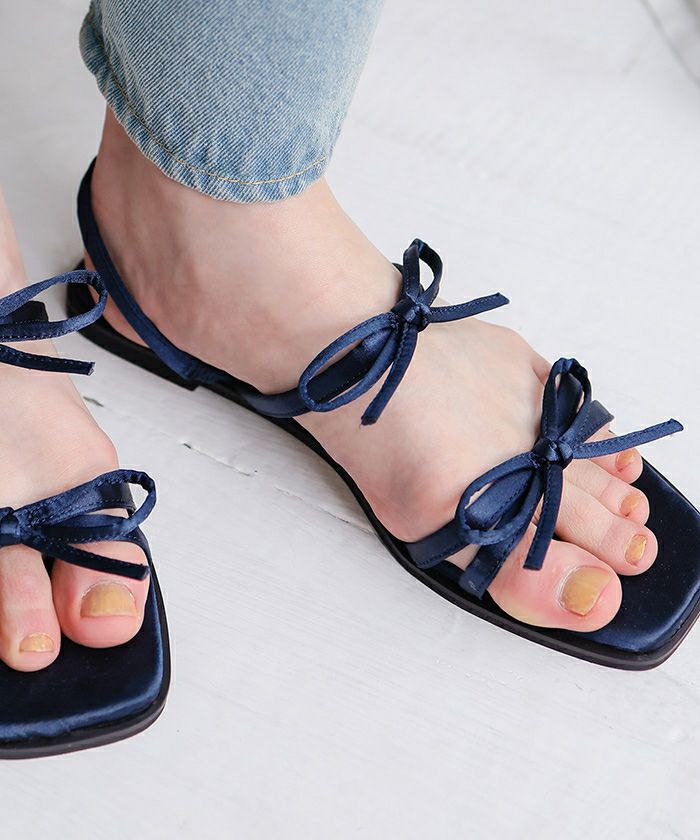 【2026shoescollection】【titivate】【IGTV】 ダブルリボンサテンサンダル