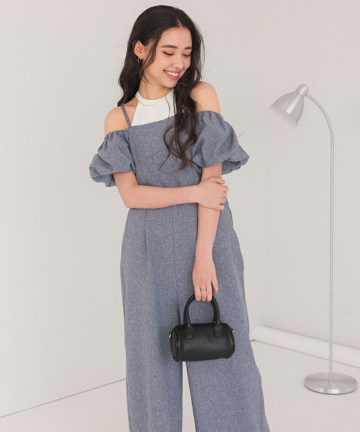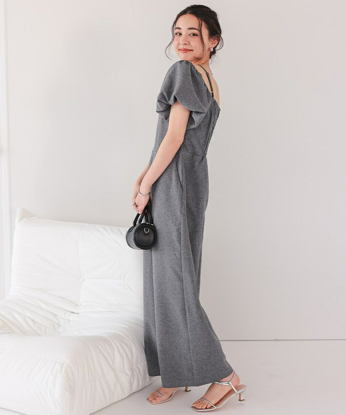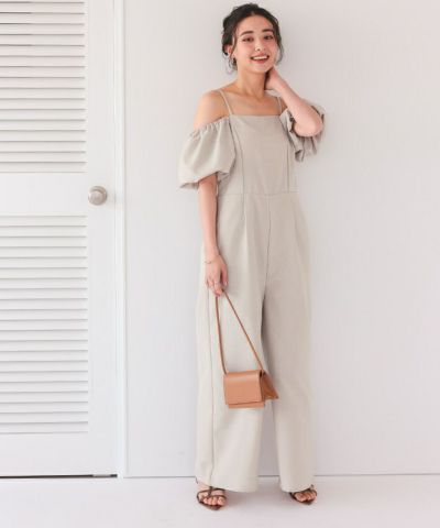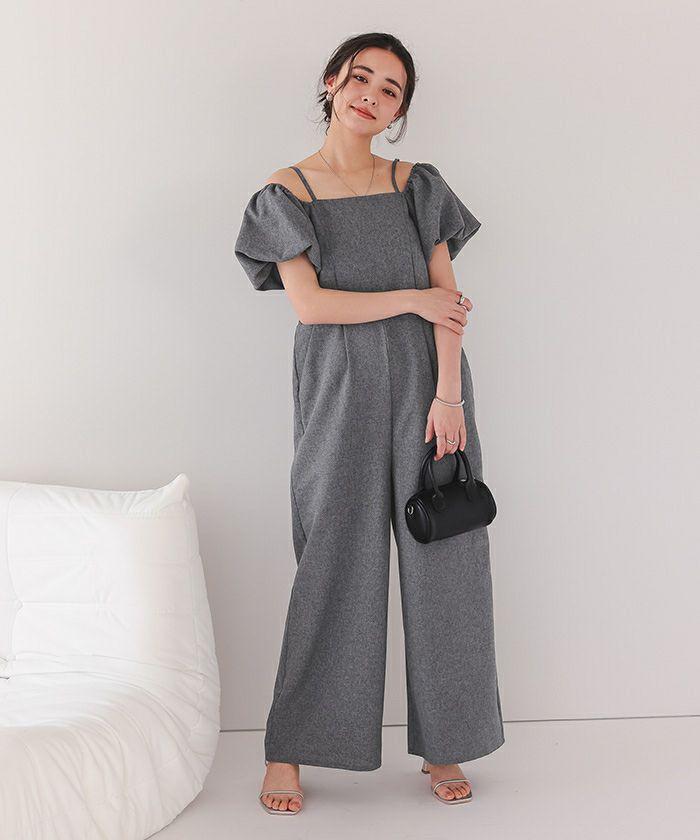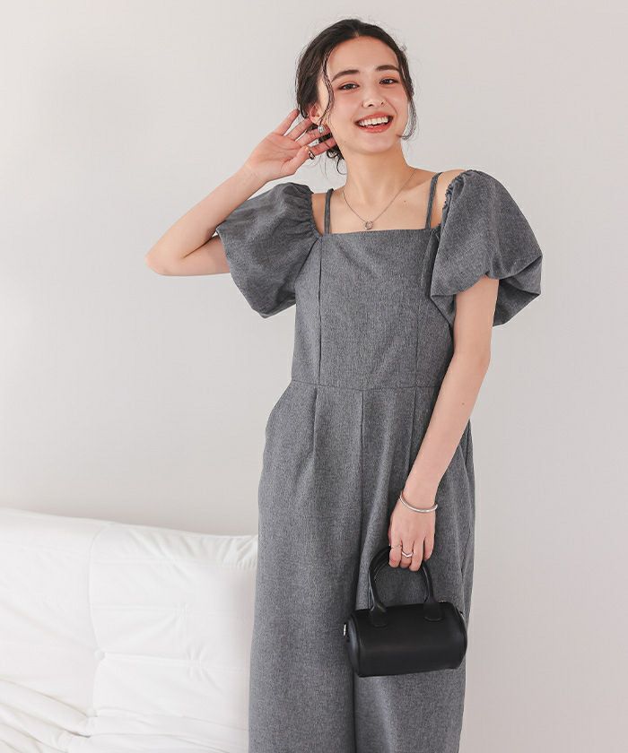 2wayオフショルパフスリーブオールインワン