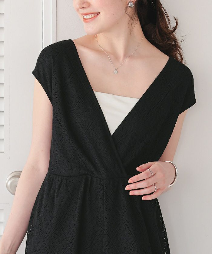 ・カシュクールで顔周りがすっきり見えるVネックデザイン