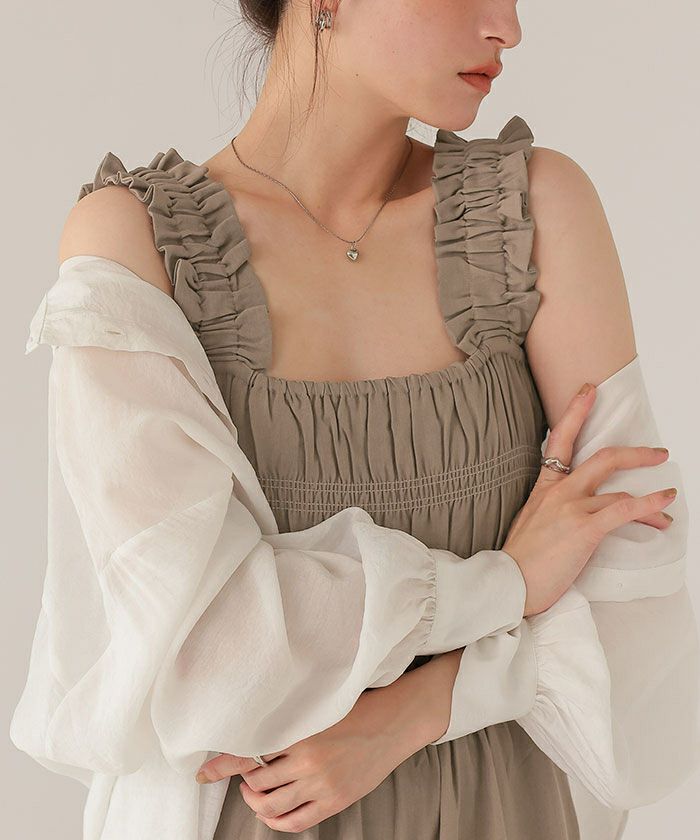 ・バスト、ウエスト部分はシャーリングゴム仕様なので着心地も楽ちんでストレスフリー。