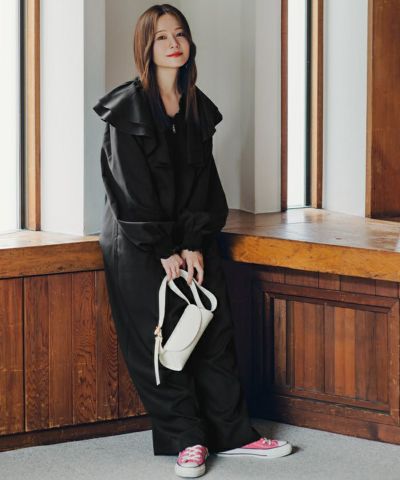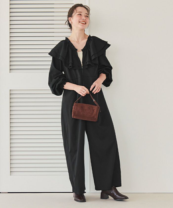 ・ふんわりフリルが目を惹く、大人可愛いオールインワン