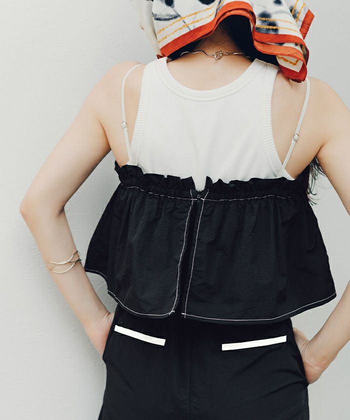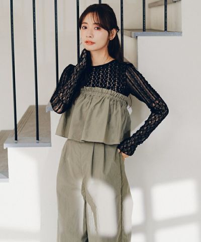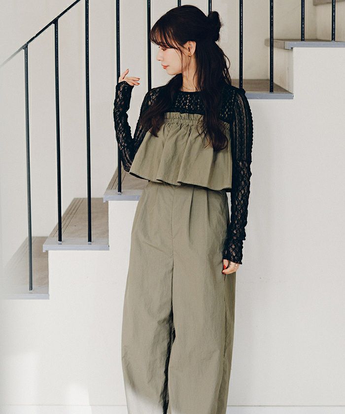 ・胸元からふんわり広がるギャザーフリルシルエットが、まとうだけで甘く・軽やかに見せてくれる主役級オールインワン
