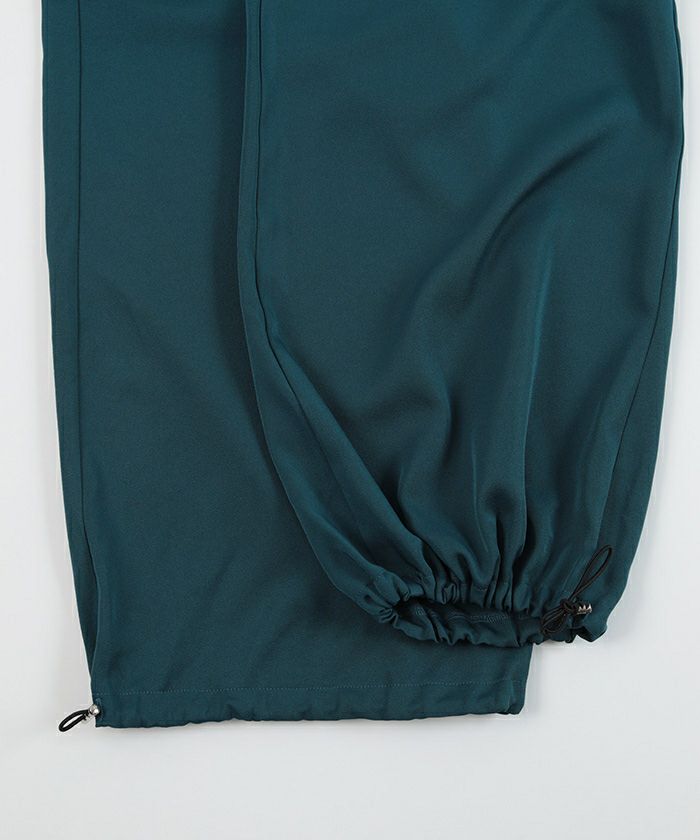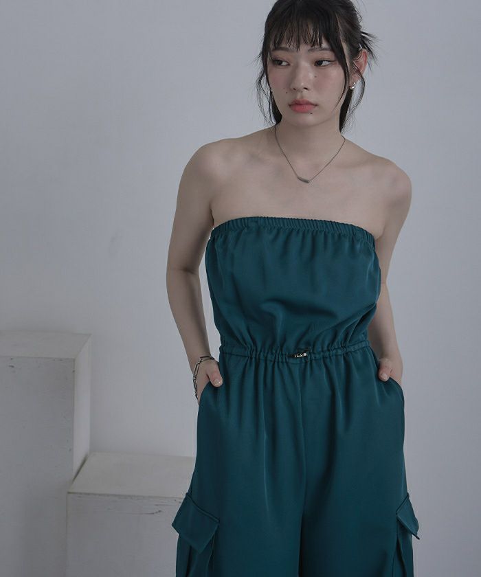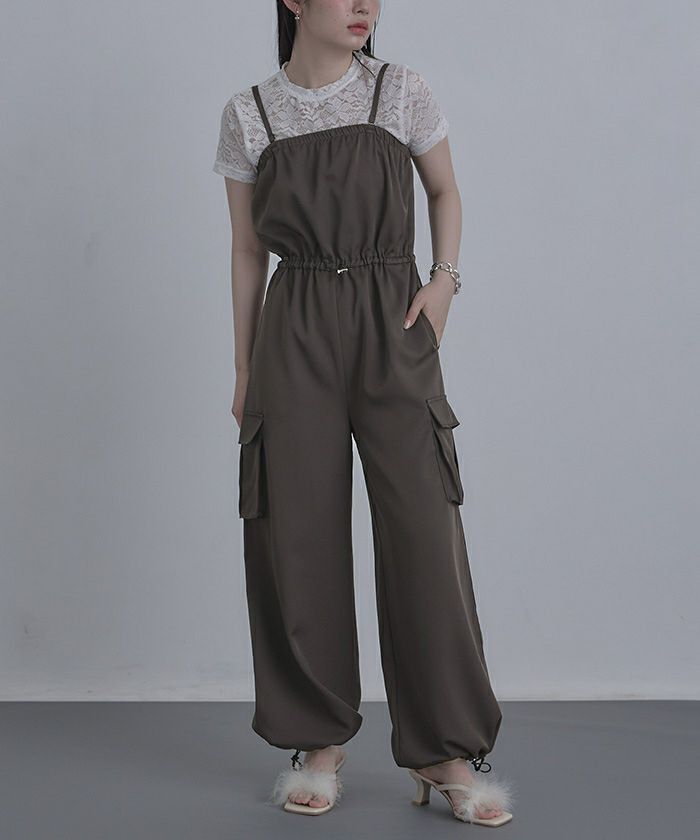 ・ウエストと裾にドロストデザインを入れたオールインワン。