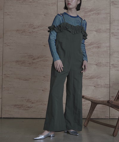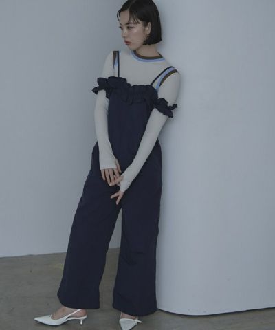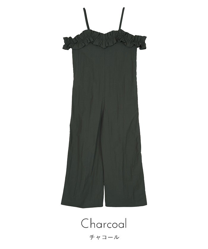 ・大人可愛いを演出してくれるオフショルオールインワン。