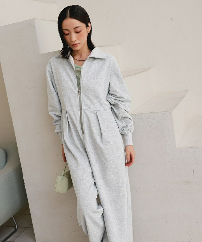 ■【miette】【期間限定★SALE】 フロントジップスウェットオールインワン【miette ミエット】