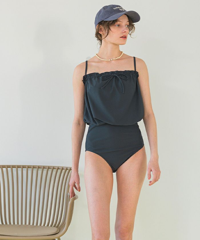 ・大人のこなれ感漂うブラウジングデザインのワンピース水着