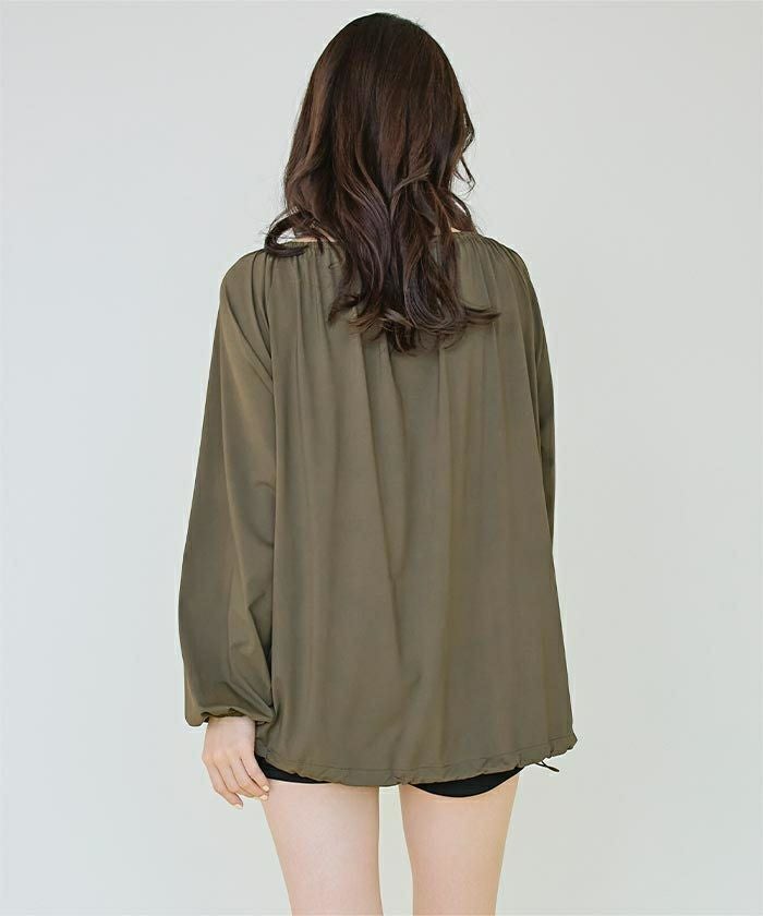 ・ブルゾンのネック周りにゴムを入れているので、ボートネックやオフショルダーなどお好きなデザインで着用でき、アジャスター付きの裾でブラウジングできる優秀アイテム。