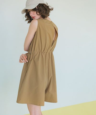 ・ハリ感のある撥水素材のノースリーブロンパースラッシュガード。
