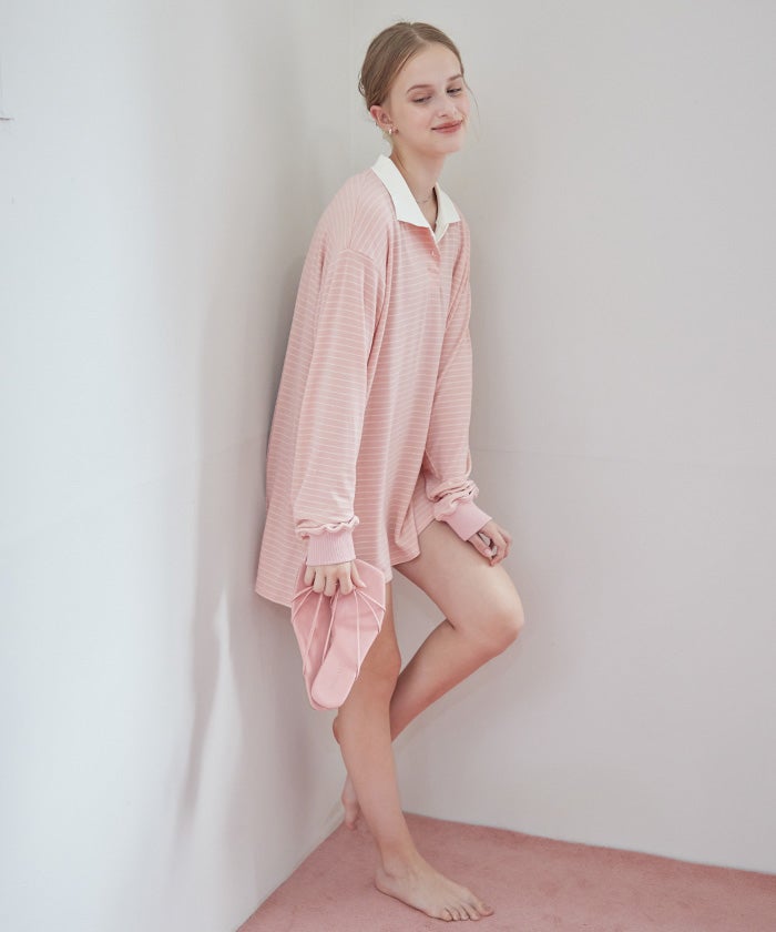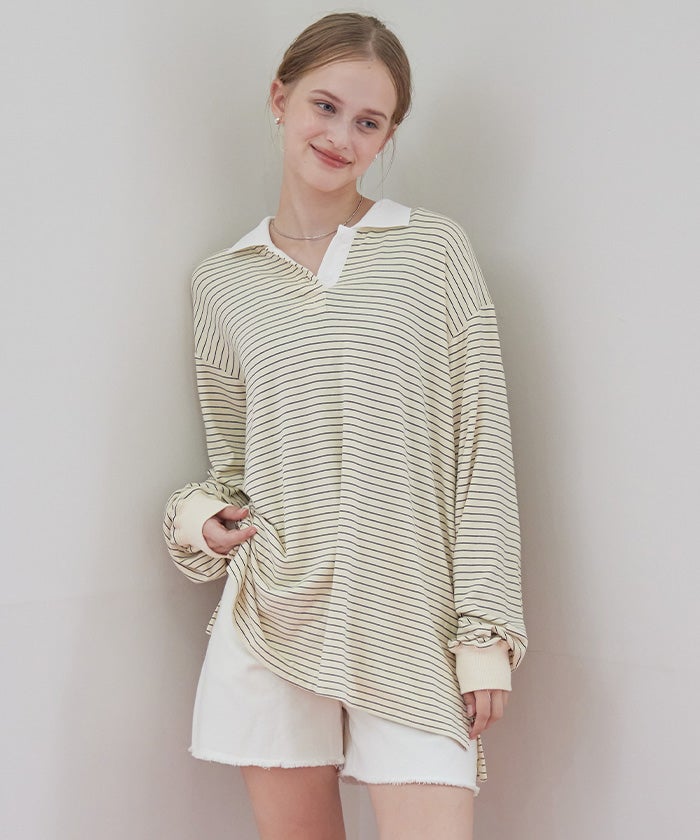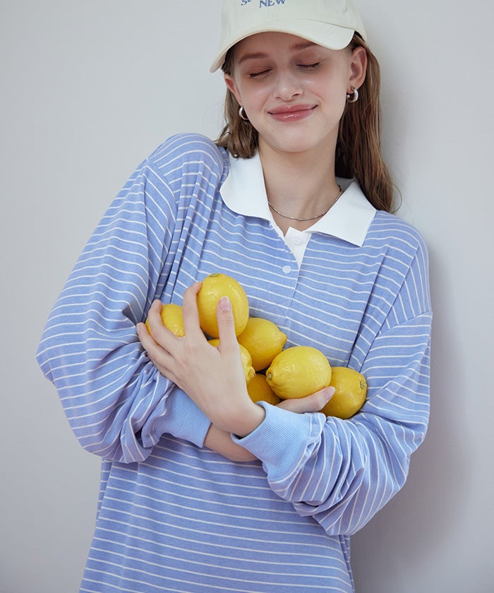 ・スポーティーなラガーシャツですが淡いカラー展開でスタイリングの幅も広がります。